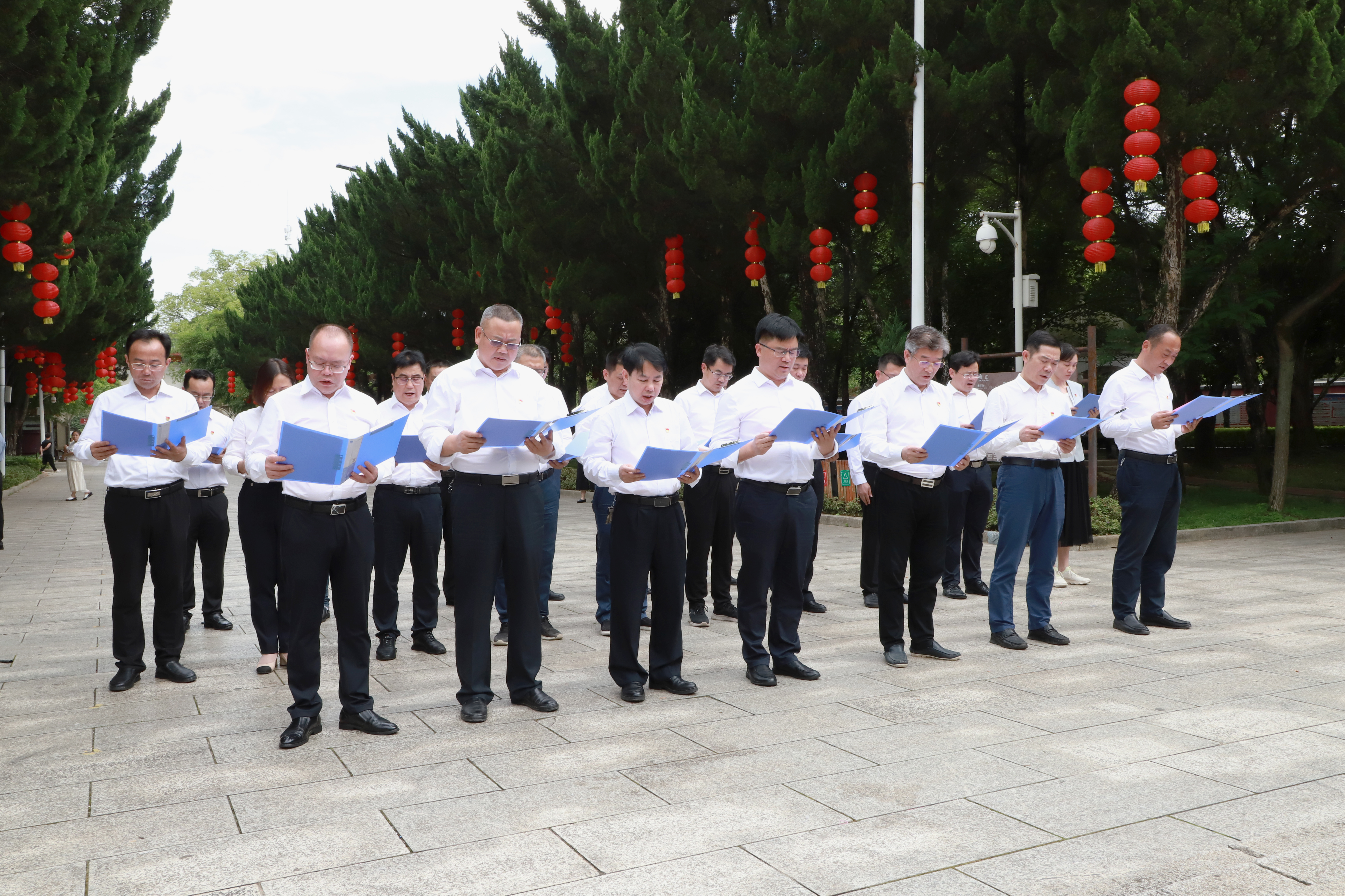 在陶铸同志铜像前,党员干部整齐列队,静默肃立,向革命前辈敬献花篮。党员干部重温了入党誓词,诵读了陶铸同志经典文章《松树的风格》,学习陶铸一心为民、一生为党的革命精神以及清廉自守的崇高风范。