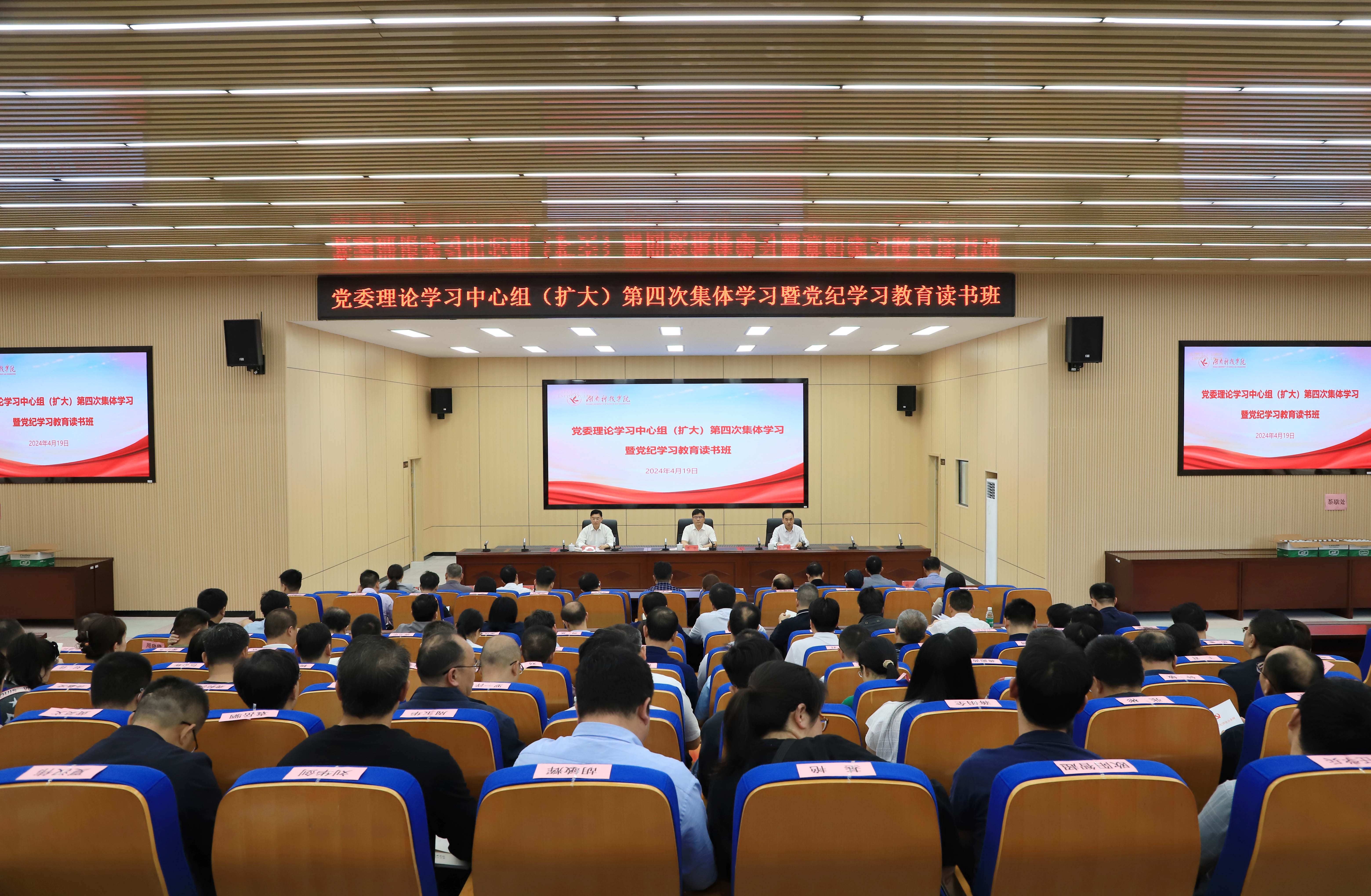本网讯 4月19日,学校开展第4次党委理论学习中心组(扩大)集体学习暨党纪学习教育读书班,深入学习贯彻习近平总书记关于党的纪律建设的重要论述以及关于党纪学习教育的重要讲话和指示精神,深研细读《中国共产党纪律处分条例》。党委书记李钢强调,要进一步强化纪律意识、加强自我约束、提高免疫能力,始终做到忠诚干净担当,为奋力谱写学校高质量发展新篇章提高坚强纪律保障。党委副书记、校长黄创霞主持。