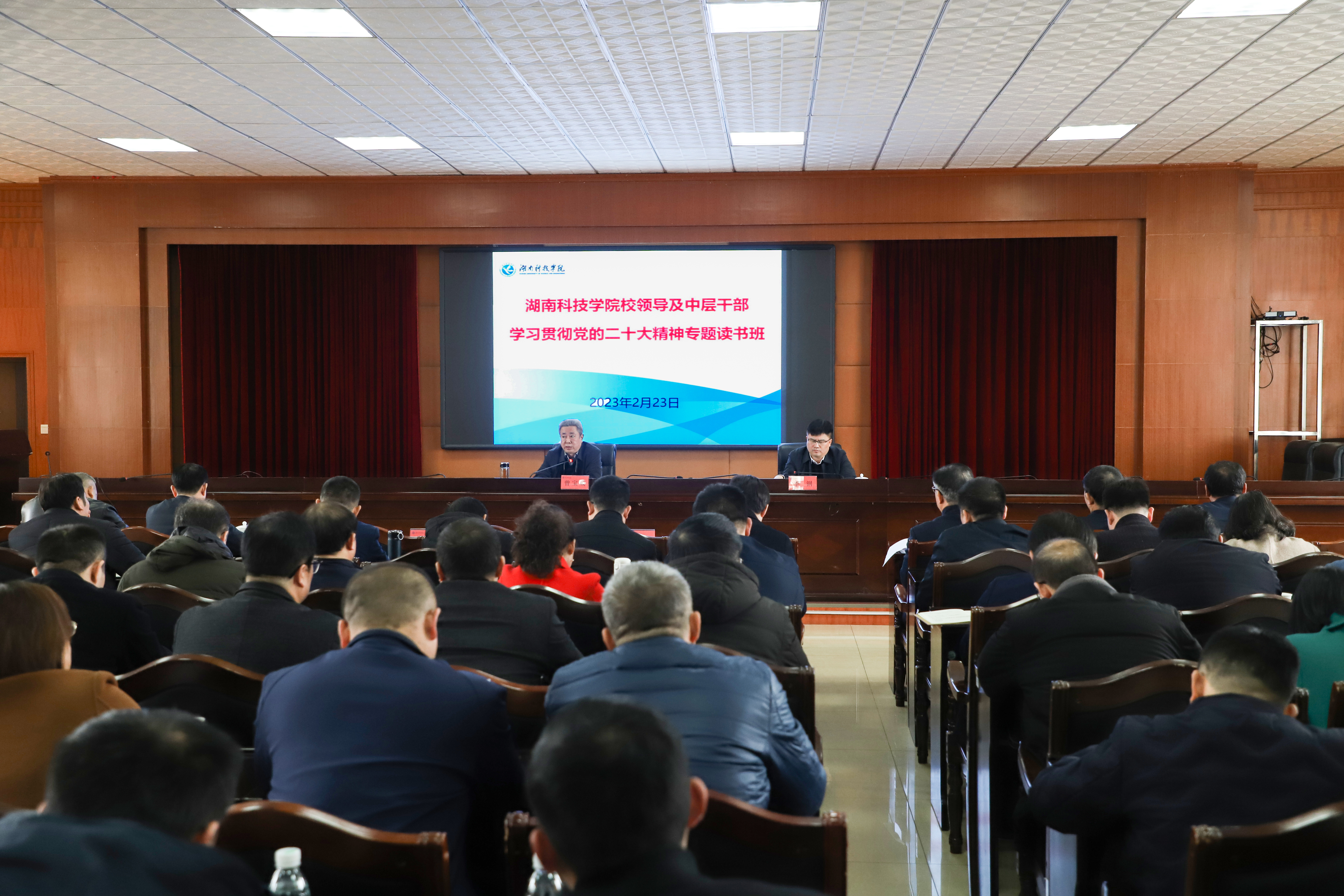 本网讯 “学习是为了更好的出发,行动是最有力的证明。我们要以此次读书班为新起点,持续深入学习贯彻党的二十大精神,以科院一域之光为湖南教育强省战略添彩,为奋力推动学校高质量发展、早日把学校建设成为特色鲜明的地方性高水平应用型大学而团结奋斗!”2月23日,在校领导和中层干部学习贯彻党的二十大精神专题读书班结业仪式上,校党委书记曾宝成一番铿锵有力又饱含深情的话语,激荡着学校全体领导干部的心。