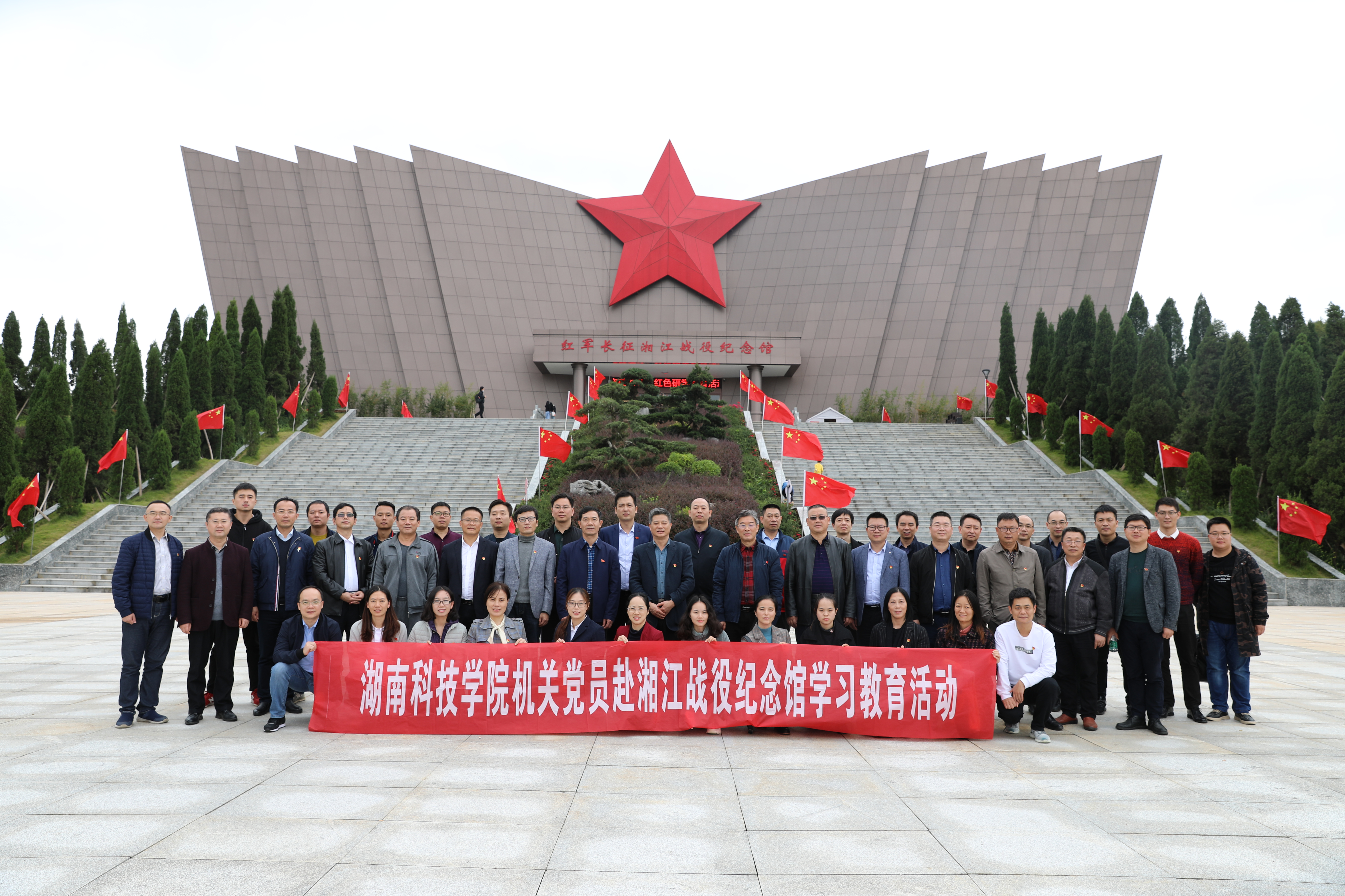 本网讯 为贯彻落实习近平总书记在湖南考察时的重要讲话精神,传承红色基因,感悟红色文化,进一步增强机关党员、干部的党性修养和责任担当。10月17日,学校机关党委组织党员干部前往广西兴安县、全州县“湘江战役纪念馆”开展主题党日活动,缅怀革命先烈,接受革命传统教育。校党委副书记唐艳明,副校长宋宏福、吴小林,党委委员、组织部长何福林参加活动。