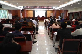 5月10日上午,校党外知识分子联谊会副会长、人文与社会科学学院副院长包红光为中国人民银行永州市中心支行全体职员解读2018年宪法修正案,这是beat365官网党外知识分子联谊会开展“知识力量·看永知永推永”行动的首场活动。