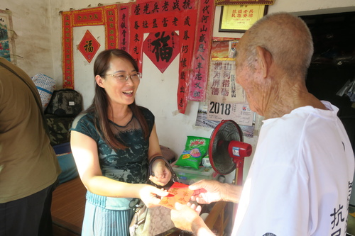 9月19日下午,民革校支部与永州职院支部部分党员代表民革市委赴宁远中和镇看望当地的抗战老兵聂运谋、欧阳大年等同志,为他们送去月饼、慰问金以及节日的祝福。