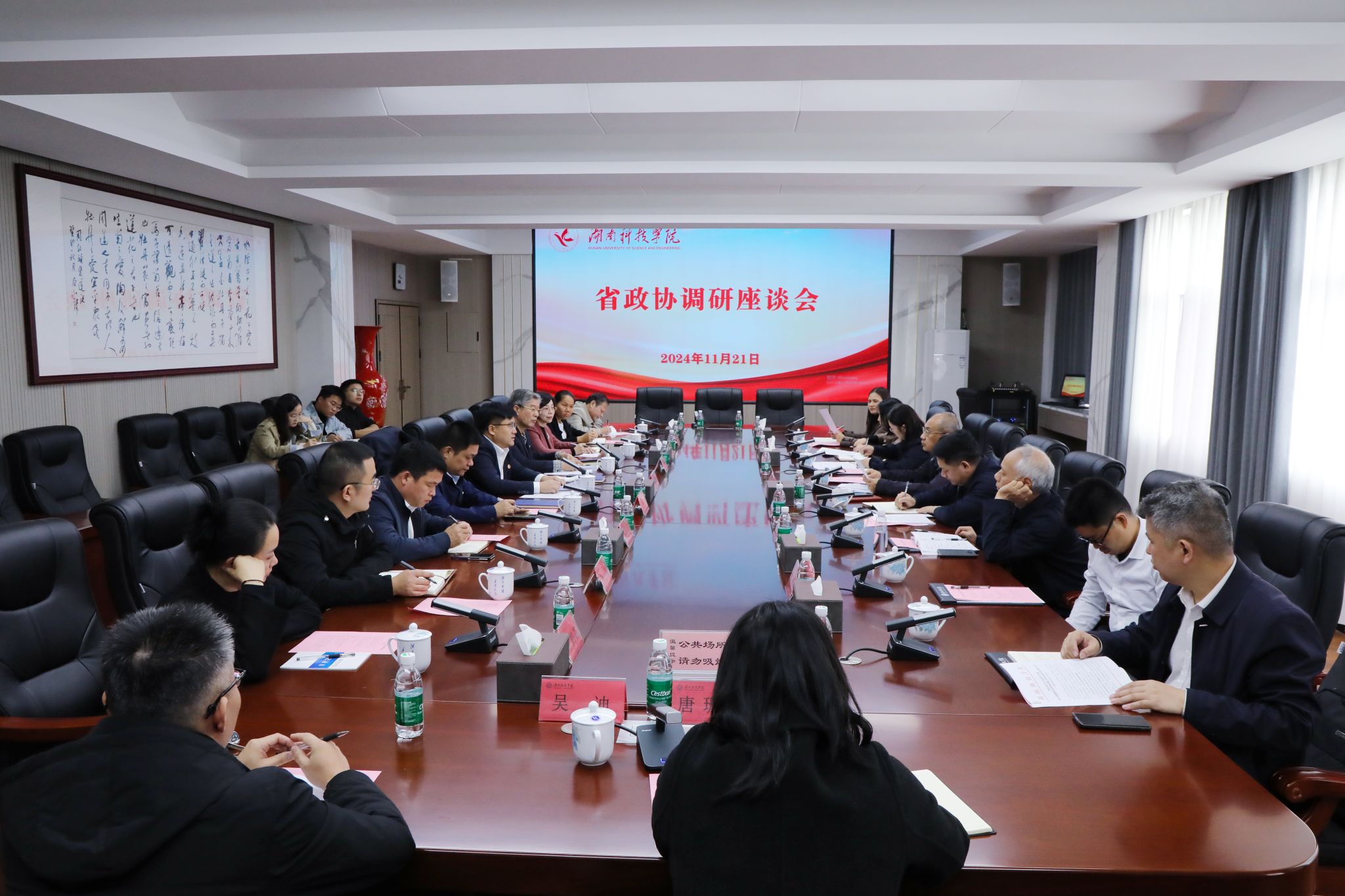 省政协调研组成员,永州市有关陪同人员,学校党政办公室、宣传统战部相关负责人,学校民进支部会员代表参加调研。
