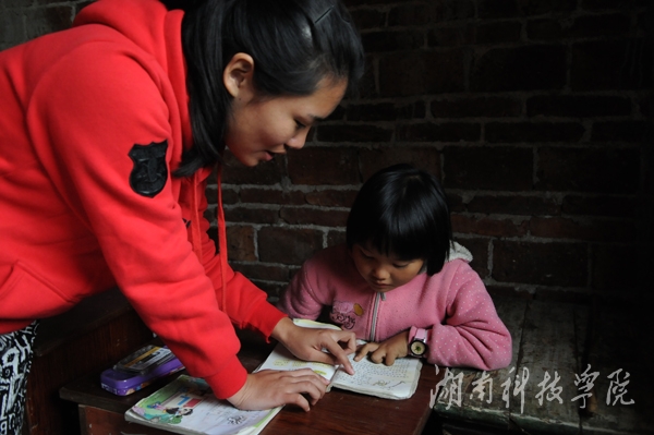 家中三个弟弟妹妹年龄尚小,易旭玲在学习之余还要兼顾对弟弟妹妹们的管教,对于弟弟妹妹们的生活用品、学习、文具、个人卫生等事务,易旭玲像“父亲”一般严格要求他们,不听话则严厉批评教导,渐渐地弟弟妹妹们都很怕她,凡是她的要求,弟弟妹妹们都会很乖巧地听从。同时,她也像“母亲”一般慈祥地去呵护他们,耐心地操持他们的家务和学业。有一次,家里打电话说妹妹的手骨骼错位了,易旭玲接到消息后第一时间赶回家里,带妹妹去医院诊治,那次,易旭玲在家吃饭,弟弟主动给她盛饭,弟弟那个时候不经意间说道:“姐姐干活这么辛苦,我也要像姐姐一样帮妈妈分担家务。”这句话深深地烙在易旭玲的心底,很不是滋味。琐碎的家务让人烦心,但对于易旭玲来说,能够看到整个家庭的和和睦睦地生活下去,就是一种莫大的幸福。