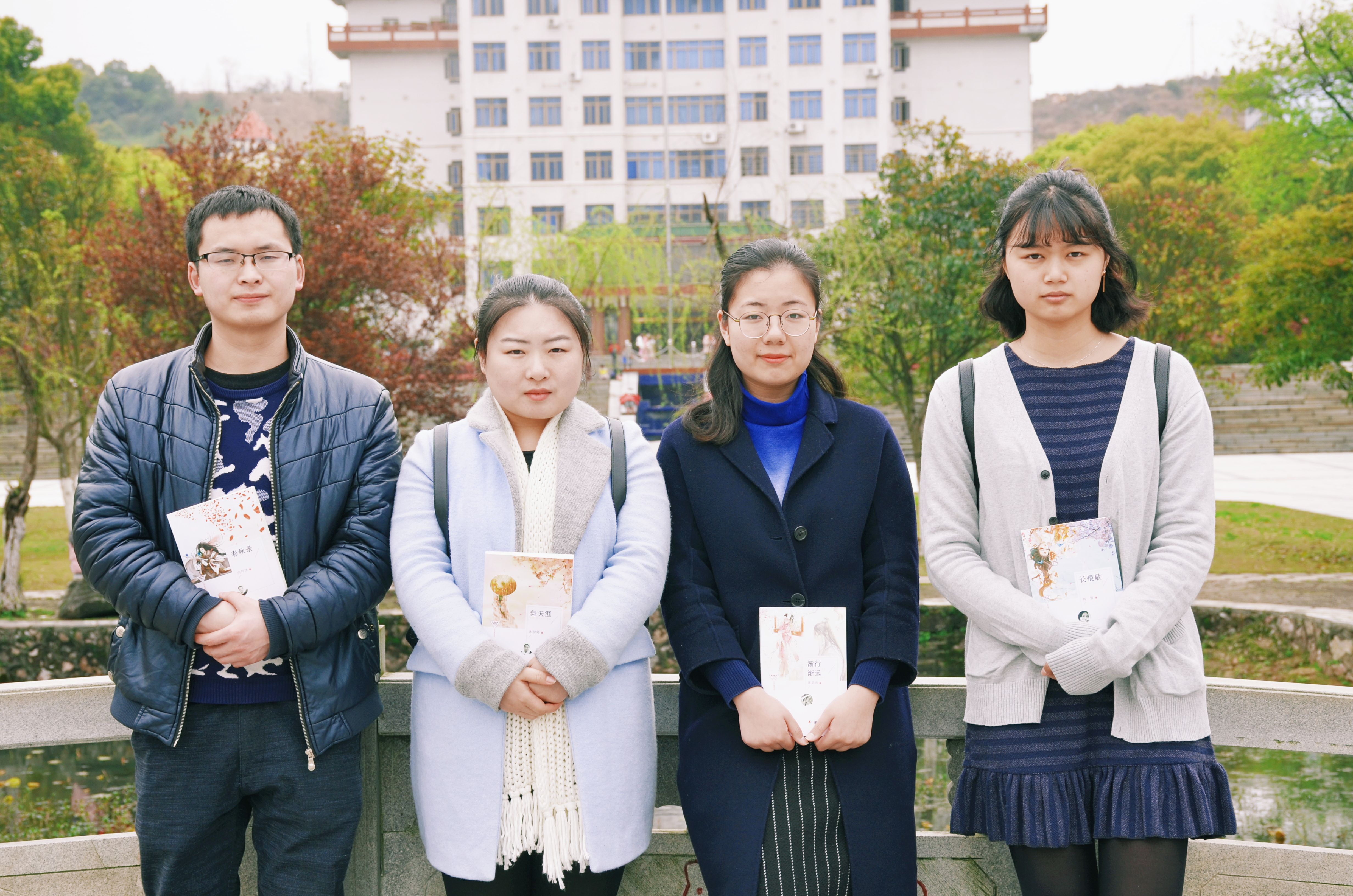 日前,向邦洋、黄茹燕、钟玺、朱梦婷创作的四部长篇小说《春秋录》《渐行渐远》《长恨歌》《舞天涯》已在“当代潇湘新锐作家方阵”丛书中一同出版。四位90后学子穿越时空、游走古今,用他们灵动的视野和新奇的手笔向我们彰显着当代大学生锐意进取的时代风貌。