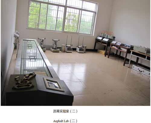 沥青实验室(二) 该室于2006年由“中央与地方共建基础实验室”项目专项资金资助建立,实验室面积35㎡,资产达5万元。该室目前承担了土木工程材料课程的实验教学任务。主要实验项目:沥青延度试验;沥青混合料含气量试验等。 部分主要仪器设备 设 备 名 称 | 规格型号 | 数量 | 电脑双速低温沥青延伸度仪 | LXS-3 | 1 | 真空饱水容器 | 75-D1124/A | 2 | 砂浴电炉 | DS101 | 2 | 电热恒温水槽(水浴) | DK-S26 | 2 | 电子天平 | TP-1200A | 3 | 电子天平 | TP-100K | 2 |
