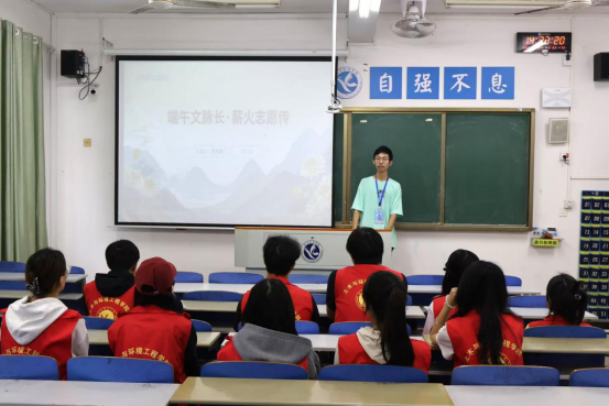 本网讯(通讯员 罗琅贵 韦宇翔)5月27日,我院在逸夫楼202举办端午节志愿宣讲活动,王子健担任主讲人,志愿者踊跃参与。