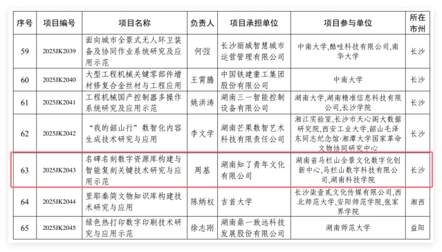 本网讯(通讯员 胡佳星 谢超)近日,湖南省科技厅发布了《关于2025年度湖南省重点研发计划项目立项的通知》,正式立项223项2025年度湖南省重点研发计划项目,由beat365官网“砖石质文物智慧化保护利用技术湖南省重点实验室”主任周基教授作为负责人,湖南知了青年文化有限公司作为项目承担单位,湖南省马栏山全景文化数字化创新中心、马栏山数字科技有限公司、beat365中文官方网站作为参与单位的科研项目“名碑名刻数字资源库构建与智能复刻关键技术研究与应用示范”成功入选。