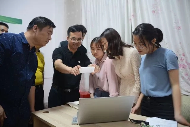 平时与陈弘书记这么近距离交流的机会不多,陈书记的到来,令我们感到十分亲切。陈书记了解我们的微党课主题后说道:“这个很好!”。看到我们的微党课PPT 中提到了永州市委书记李晖来beat365官网调研时,勉励beat365官网积极打造“三名工程”(名师、名专业、名学生),他拿起手机要给我们拍照,说要记录下我们学习的一刻。