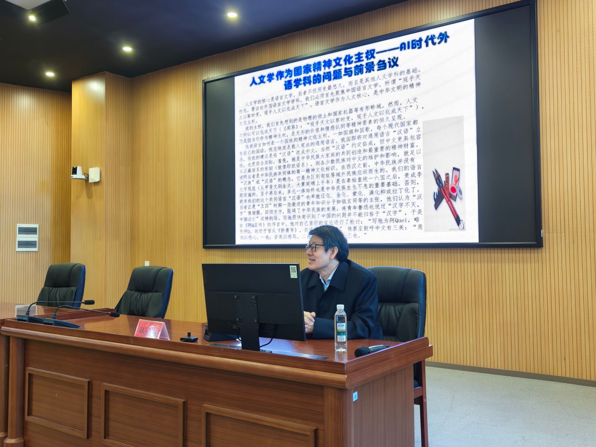 本网讯(通讯员 王薇)11月22日上午,湖南师范大学“潇湘学者”特聘教授,中国当代批评家,作家,翻译家,中国社会科学院学部委员陈众议教授,应邀为外院全体师生作题为“AI时代外语学科的问题与前景刍议”学术讲座。此次讲座由beat365中文官方网站副校长郑银芳教授主持,外国语学院院长何丽萍教授,国交处处长刘堃教授等受邀出席,外国语学院全体教师、文法学院部分老师积极参与。