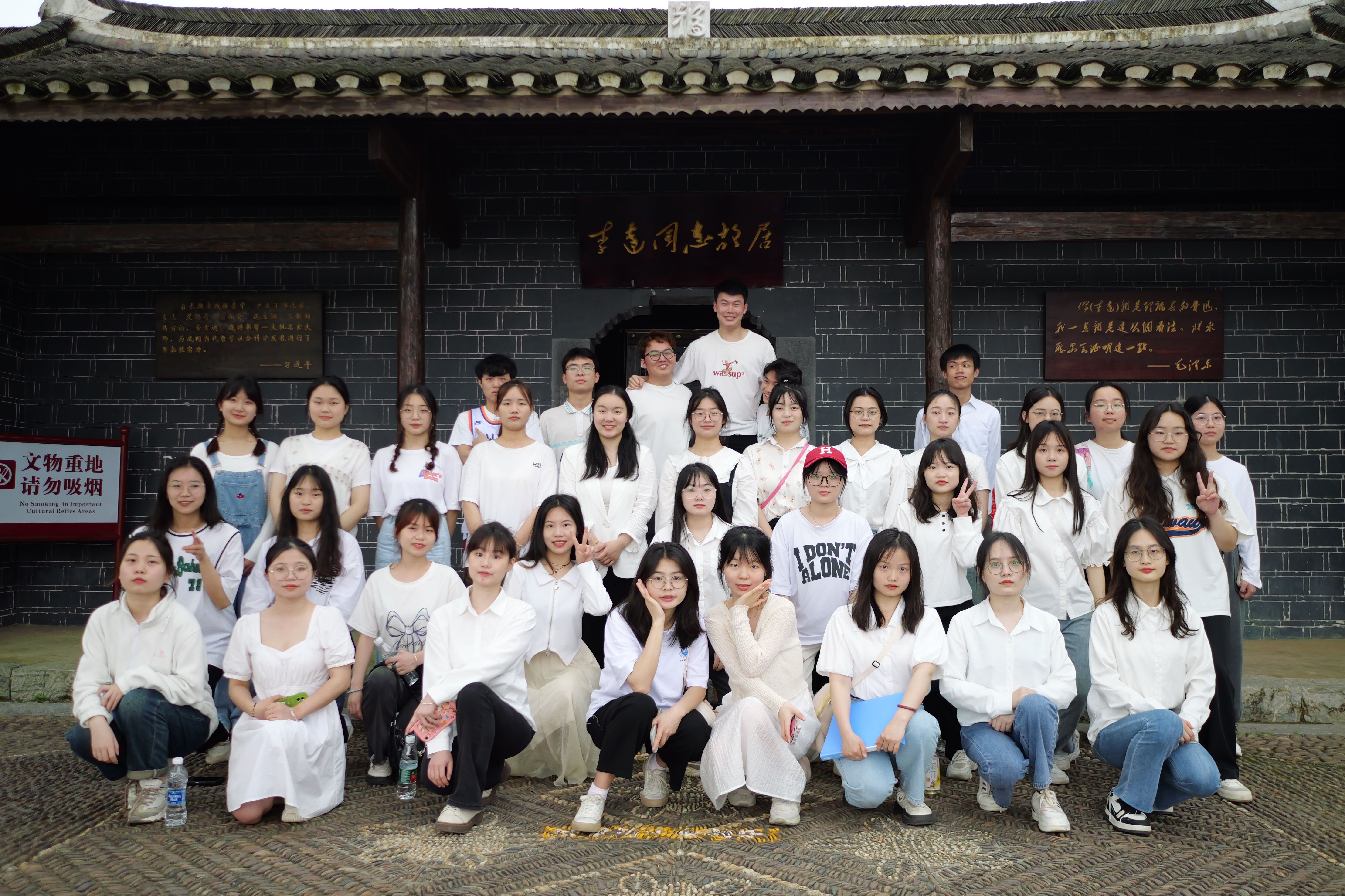 这一次,学生走出教室,走进红色教育基地开展班会活动,汲取奋斗力量。商务英语2002班和英语(师范)2103班分别前往李达故居和永州市烈士纪念园召开主题班会。在李达故居,同学们了解了李达同志的生平事迹,领略了老一辈革命家的风采,他勇于探索、敢为人先的创新精神,坚守信念、不怕牺牲的革命精神激励着在场的每一位师生。烈士纪念园内的革命烈士纪念碑巍然耸立,同学在英雄纪念碑下以青春之名宣誓,发出了“请党放心,强国有我”的呼号。