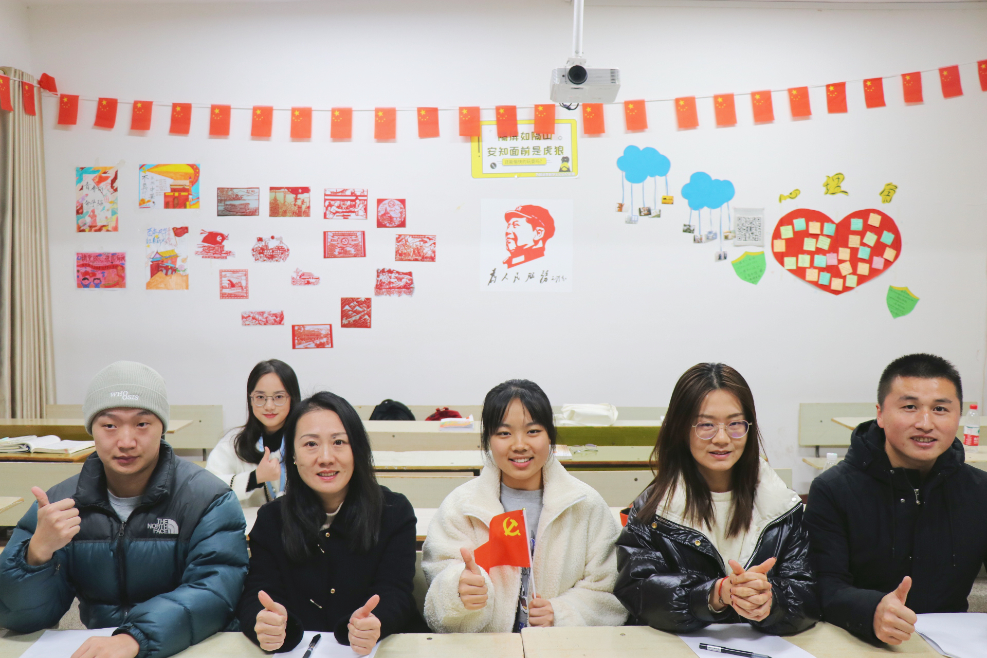 (通讯员 王梓艳 摄影 李西庚)11月30日下午5:30,外国语学院开展了以“党在我心中—红色基因代代传”为主题的红色教室布置活动。外国语学院党总支副书记罗晶、辅导员刘罗、唐鹤轩、李政锴担任本次活动评委。大一、大二各班级参与此次活动。