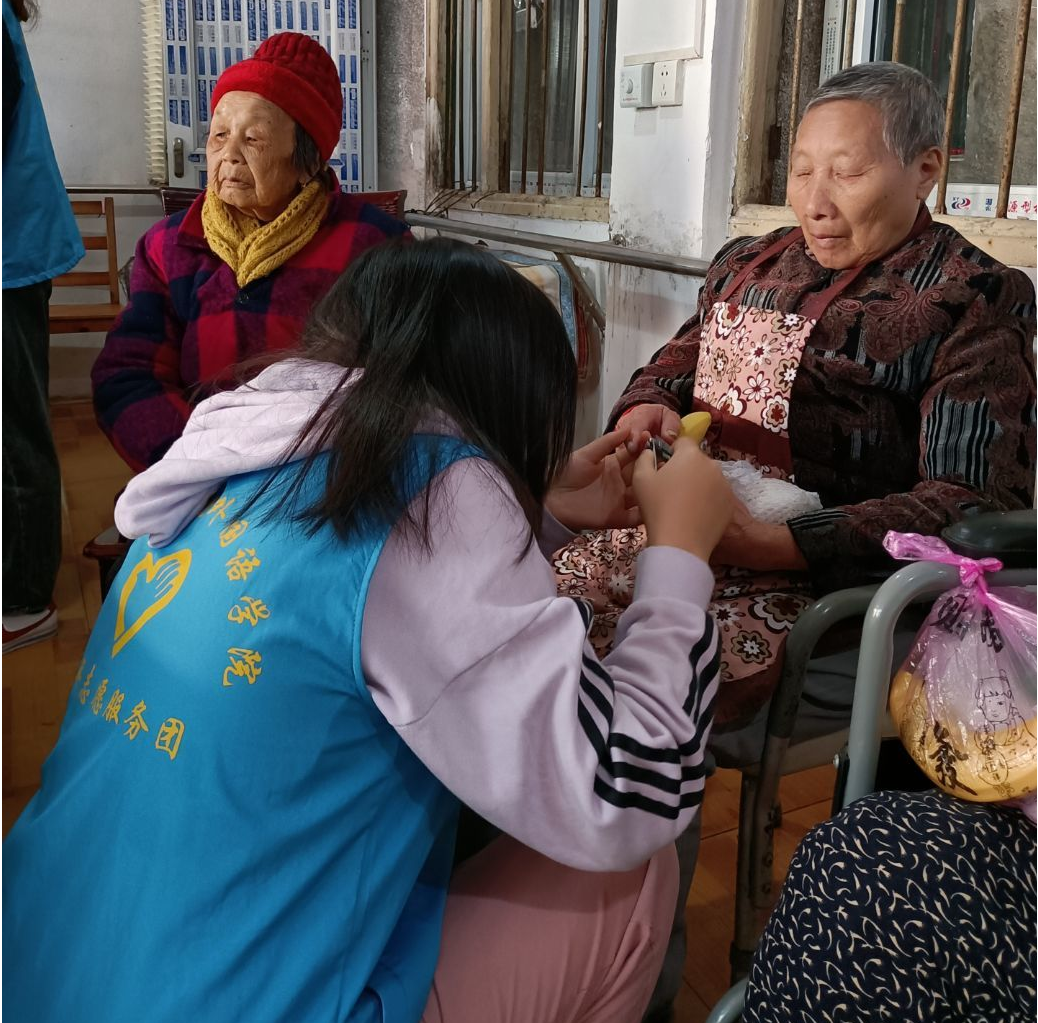 紧接着,在社工的带领下,我们前往养老院看望老人。