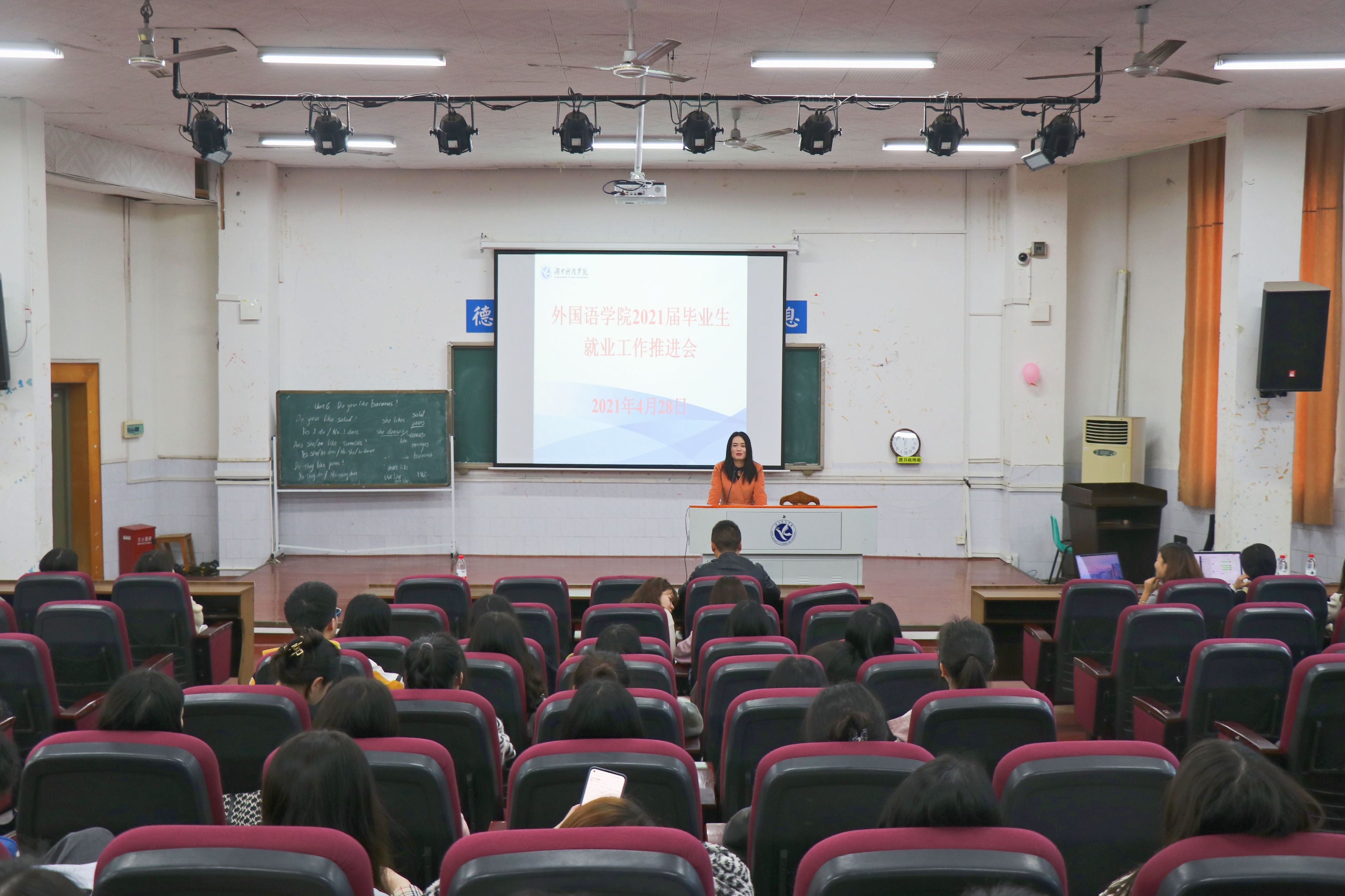 本网讯(通讯员 陈奕君 摄影 文慧聪)4月28日下午,外国语学院在博雅楼东三召开了2021届毕业生就业工作推进会,全体在校毕业生参加了本次会议,党总支书记张剑教授出席并讲话,会议由学工办副主任、2017级辅导员刘罗主持。