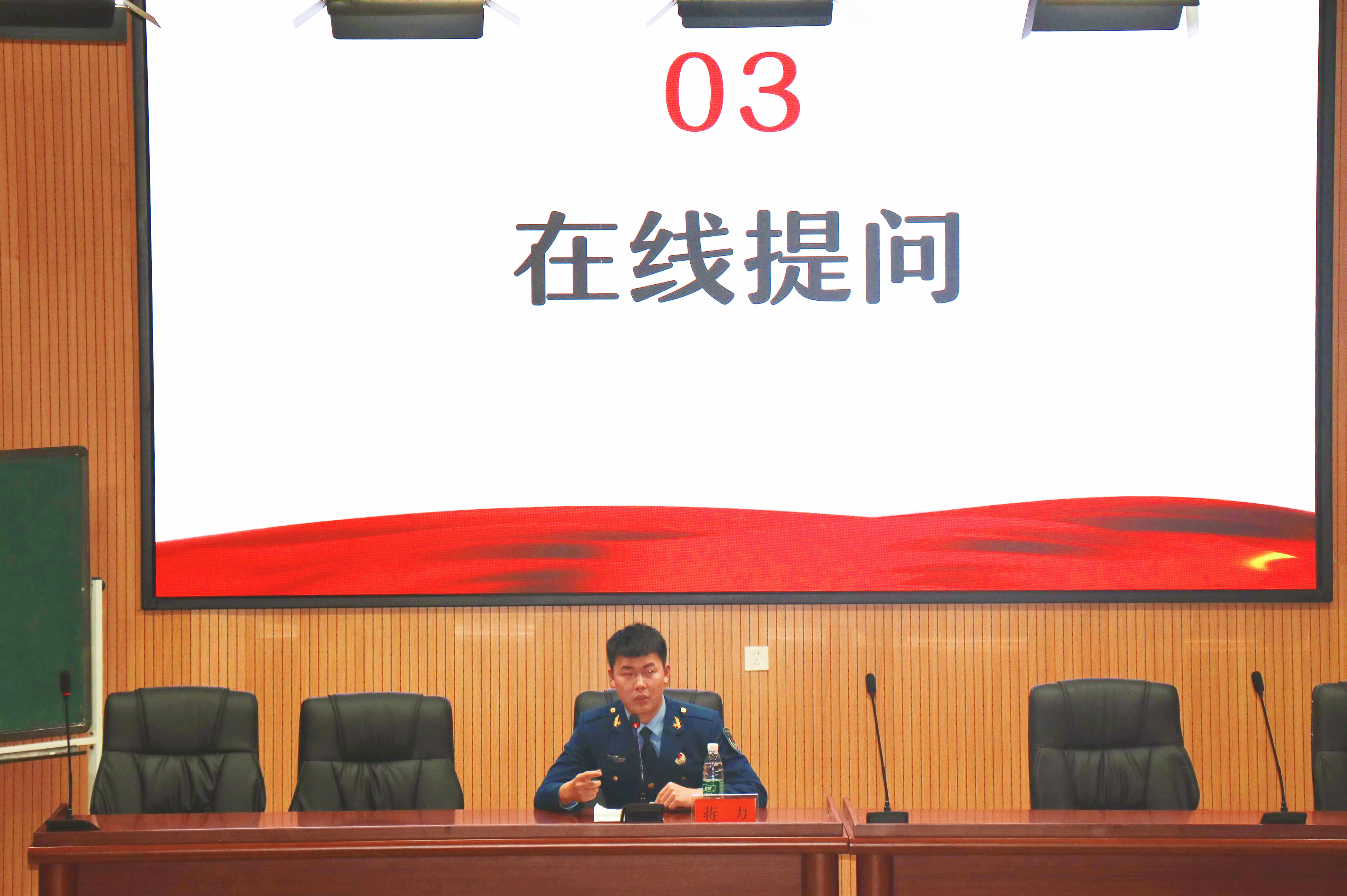 在线提问环节中,蒋力结合个人经历一一解答了如“参军入伍的身体素质要求”、“退伍后该如何选择”等问题。他建议同学们积极响应国家号召,投身军营,锤炼出过硬的身体素质,培养坚定的意志品质和爱国情怀。