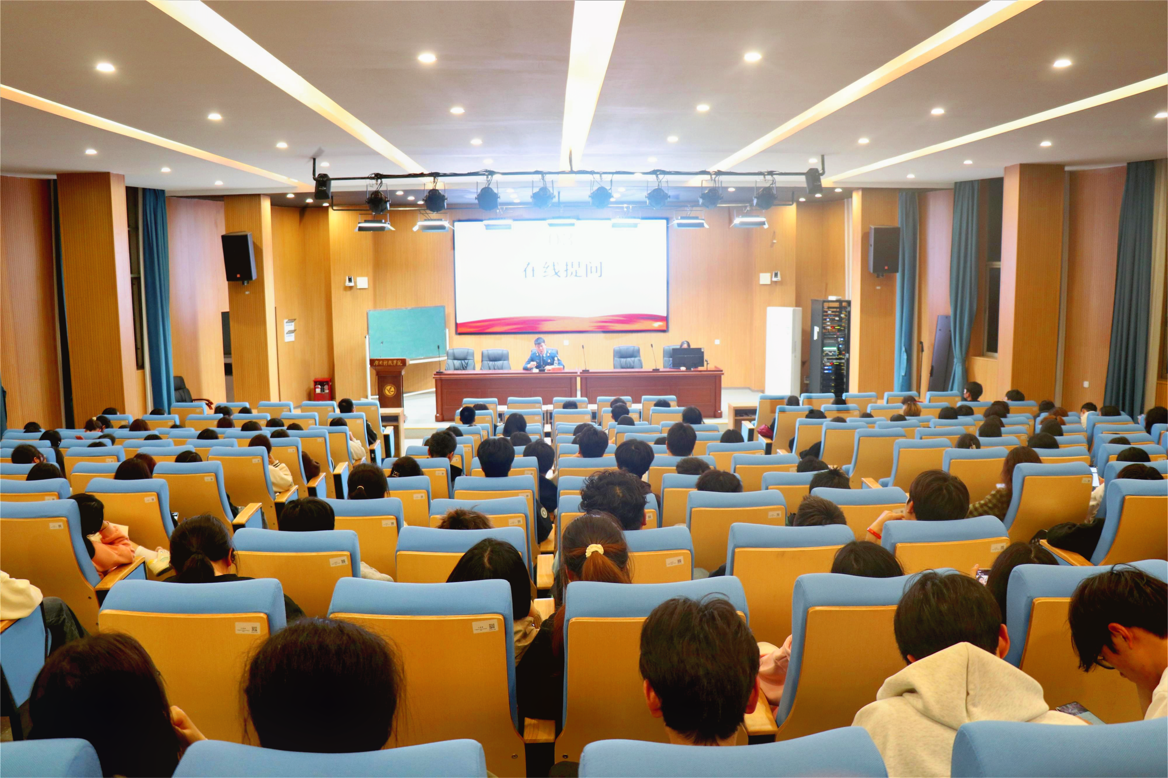 (通讯员 江映稼 摄影 袁睿)3月22日19:10,外国语学院于博雅楼东三报告厅举办以“风华正茂书壮志,参军报国正当时”为主题的第九十四期菁菁学子讲坛。本次活动邀请到商务英语2002班蒋力作为主讲人。全院共有200多名同学参与讲座。