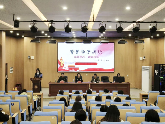 (通讯员 陈林文 摄影 蒋瑞藤)12月17日晚,我院于博雅楼东三报告厅举办了第115期菁菁学子讲坛。本期讲坛主题为“戎装励志,青春报国”,邀请电科2302班田欣怡、日语2301班齐思萱、化学2201班朱浩伟为主讲嘉宾,活动共有124名同学参加。