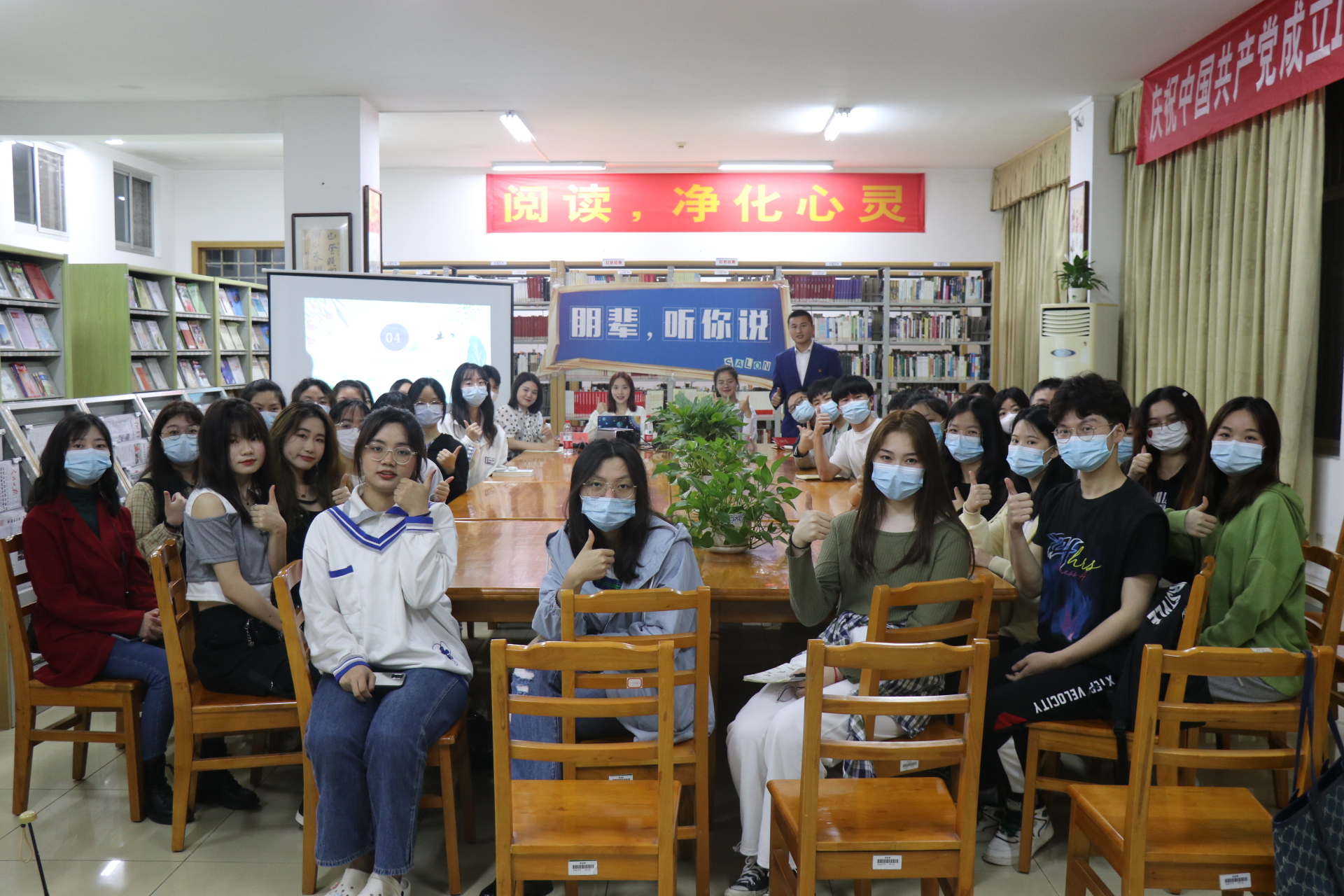 本网讯 5月10日晚,“阅读,净化心灵”之“朋辈,听你说”沙龙第五期举行,大学生心理健康教育中心李媛老师、外国语学院心理专干刘罗老师、理学院心理专干谢美老师应邀出席,beat365中文官方网站、永州职业技术学院、湖南九嶷职业技术学院、永州师范高等专科学校四所高校的100多位朋辈心理互助员通过线上及线下两种渠道共同参加。