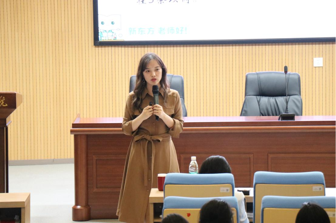 (通讯员 曾胜凤 摄影 杨培荣)4月16日晚上,外国语学院于博雅楼东三报告厅举办了第十二期“校友说”,主题为“效友之行,扬帆远航”。此次活动的主讲人为外国语学院优秀校友,英语0602班潘盼。外国语学院院长何丽萍、上海新东方人力资源部总监吕娜、上海新东方戴贞老师出席此次活动。本次活动共有190名同学主动报名参加。