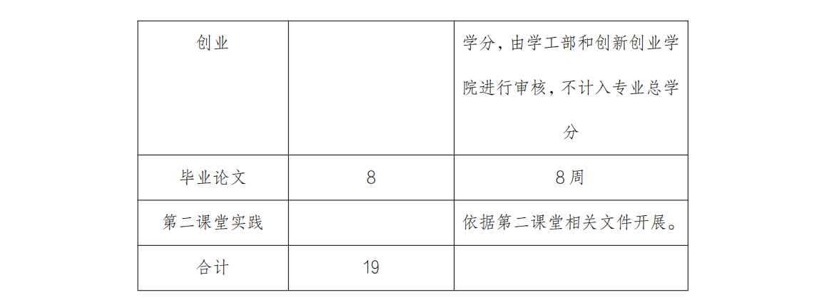 本专业学生在校期间,必须修满本方案规定的 162 学分,否则不予毕 业。其中: 必修课程 135.5 学分,包括:通识必修课程 36.5 学分、学科基础课程 14.5 学分、专业核心课程 41.5 学分、创新创业课程 5 学分、教师教育课程 18 学分(师范类专业)、集中实践环节 20 学分。 选修课程 26.5 学分,包括:通识选修课程 8 学分、专业选修课程 16 学分、教师教育课程 2.5 学分(师范类专业)。 修满学分,达到一定条件,符合学位授予的相关规定,授予文学学士 学位。