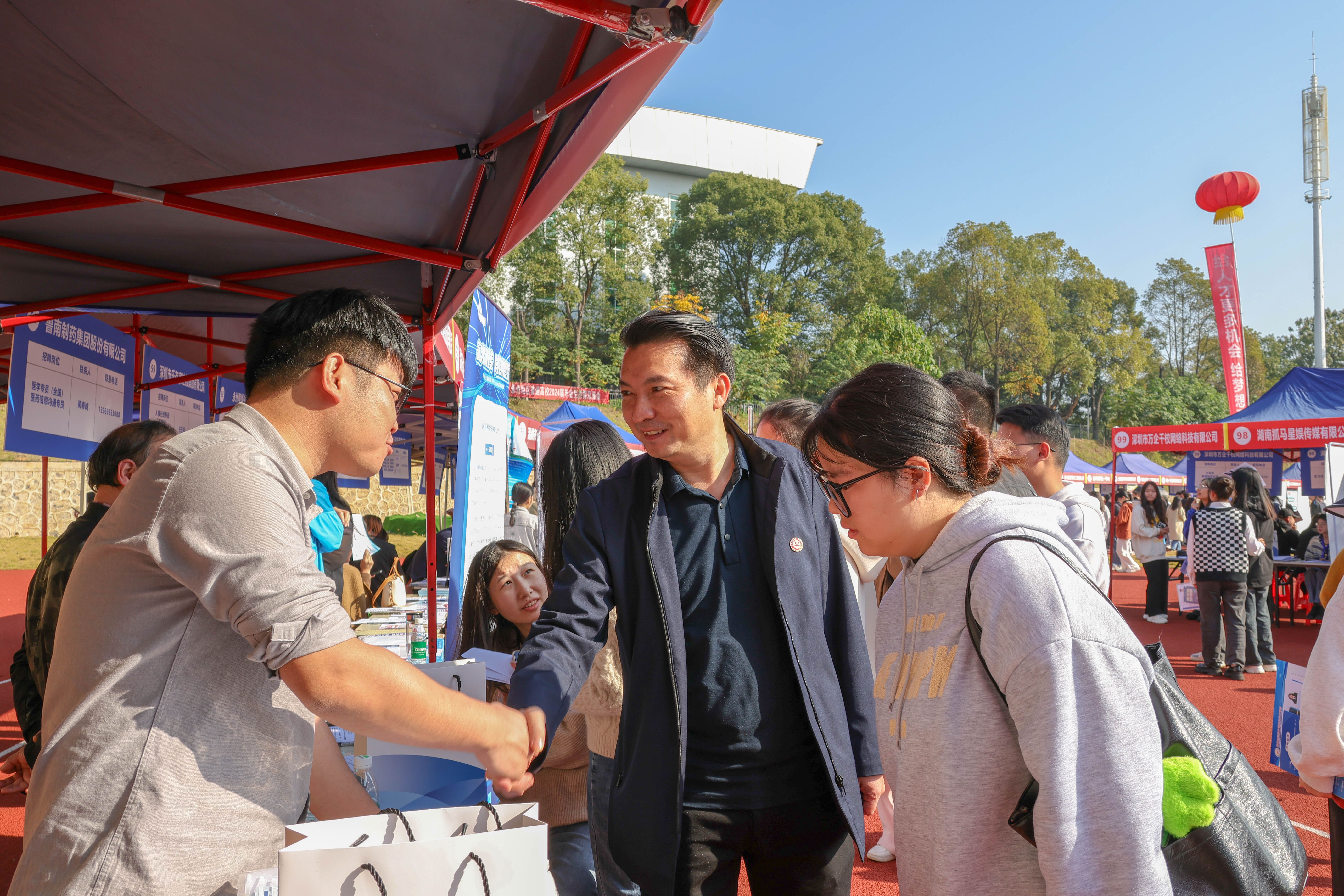 (通讯员谭俊杰 王素芳)为全面贯彻落实党中央、国务院“稳就业”“保就业”决策部署,更好为毕业生搭建求职平台,促进beat365官网2024届毕业生高质量就业,2023年11月28日上午,永州地区普通高校2024届毕业生供需见面会在beat365中文官方网站田径场举行。外国语学院党总支书记唐君、辅导员王素芳带领2024届毕业生参加招聘会。