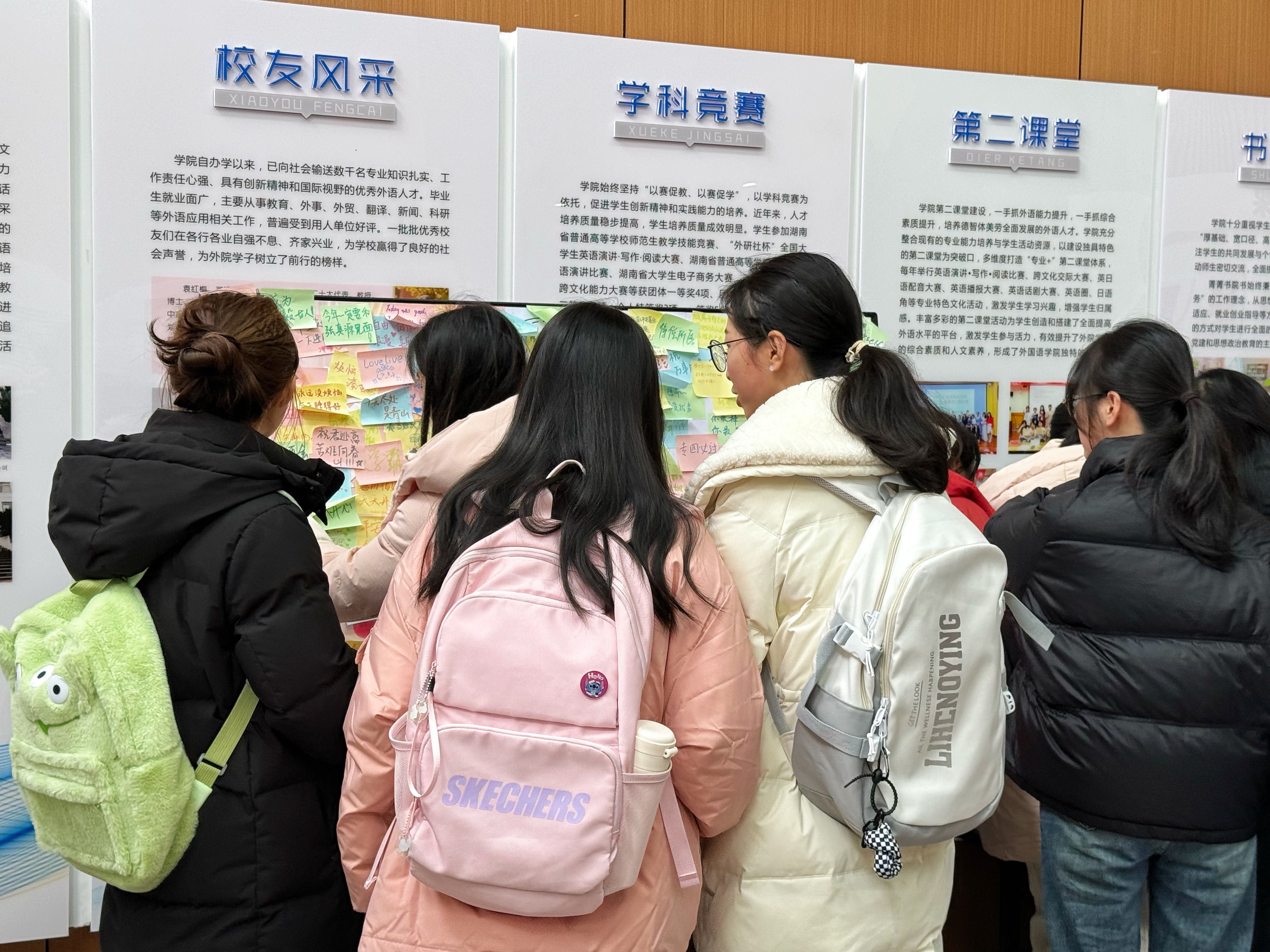 活动现场,同学们领取便签,写下自己的烦恼与忧虑,将其贴在情绪展板上。同时,同学们通过盲盒便签活动,对他人的烦恼与忧虑进行回应,通过盲盒交换鼓励便签,传递爱与祝福。在心情展板上,大家通过纸条分享心得,交流心声。纸条上盈满了温馨话语,诚挚祝福例如专四必过、身体健康、减肥成功等等,展现出大家对其他同学的温暖关怀。同学们给予对方耐心的倾听,以温暖的话语进行回应,为对方提供了最温柔的解忧良方。活动结束时,展板区已经变成了一片色彩斑斓的海洋,海报、宣传单和便签紧密地贴满了展板。
