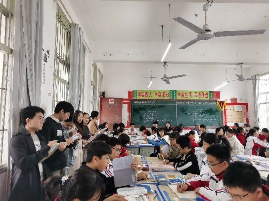本网讯(通讯员 刘敏)为加强师范生教育实习的过程监控与管理,进一步密切与实习基 地学校合作关系,11 月 12 日,外国语学院院长欧华恩带队赴宁远三中检查实习工作,并看 望慰问带队教师和实习学生。 检查组一行 4 人于当天上午听了实习生的汇报课,随后,便召开实习生座谈会。首先欧 院长详细询问实习学生的工作、学习和生活情况,向他们表示问候,并希望实习学生树立远 大目标,虚心学习,积极进取,充分认识实习的重要意义,为将来走上教师工作岗位奠定基 础。紧接着,检查组成员依次对汇报课做了点评,认为这是一堂成功的英语课,并从课堂用 语、活动设计等方面提出了相应的教学改进建议,在此过程中,所有实习生受益匪浅。 从检查的总体情况来看,基地学校指导教师对实习生提供悉心指导和帮助,实习生能够 虚心请教,相互交流,精心备课,实习工作井然有序。实习生普遍反映,通过开展听课、备 课、试讲、讲课、批改作业以及参加班级组织管理等系列实习工作,进一步坚定了从教信念、 夯实了专业基础、有效提升了教师教育技能。本次实习检查工作,收集了相关教学建议,强 化了实习生的安全意识,同时,也进一步巩固了院校之间的合作关系。