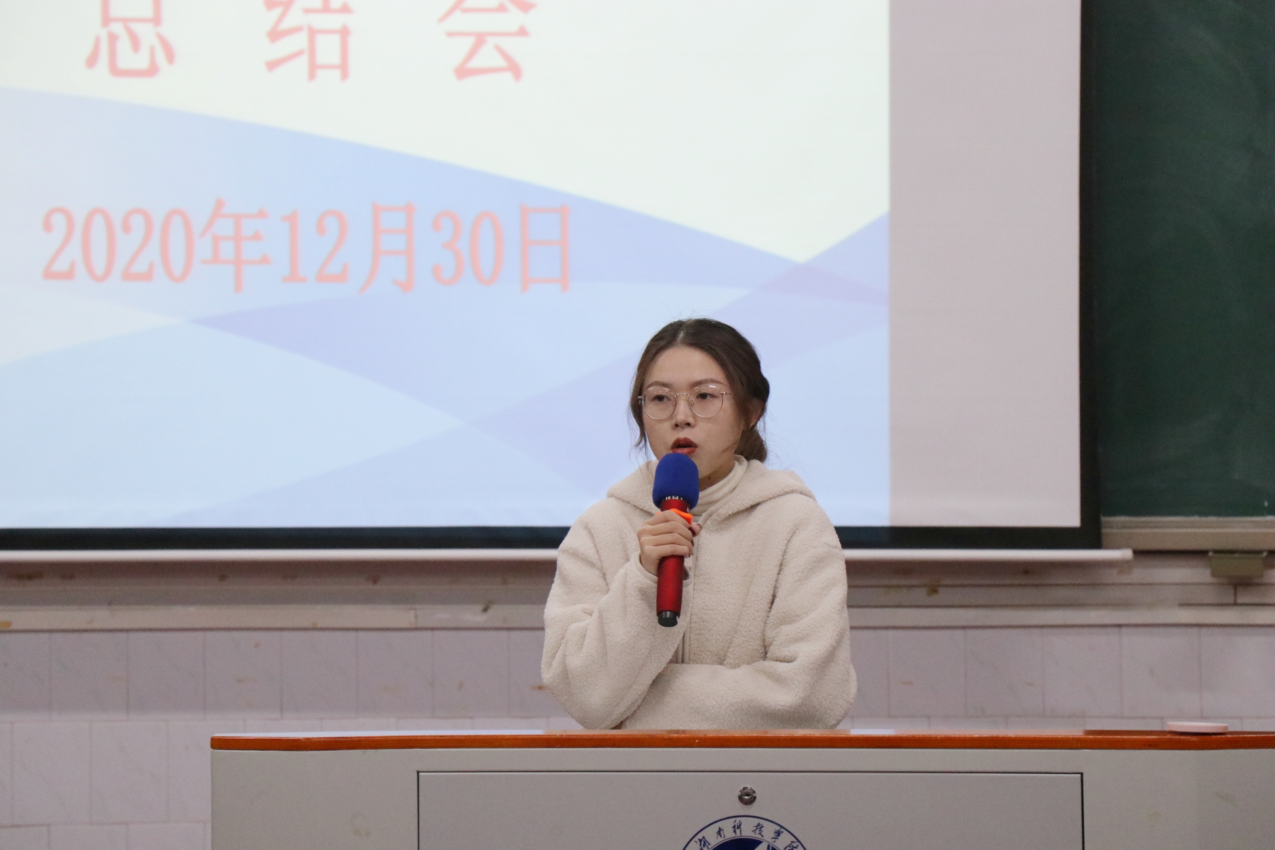 本网讯(通讯员 文慧聪)12月30日晚7:30,外国语学院在博雅楼东三教室召开了商务英语专业2021届毕业生实习总结会。外国语学院院长欧华恩、商务英语系系主任李靓、2021届实习带队老师唐晨、潘缌缌及商务英语专业17级、18级全体学生参加此次会议。会议由17级辅导员、学工办副主任刘罗主持。