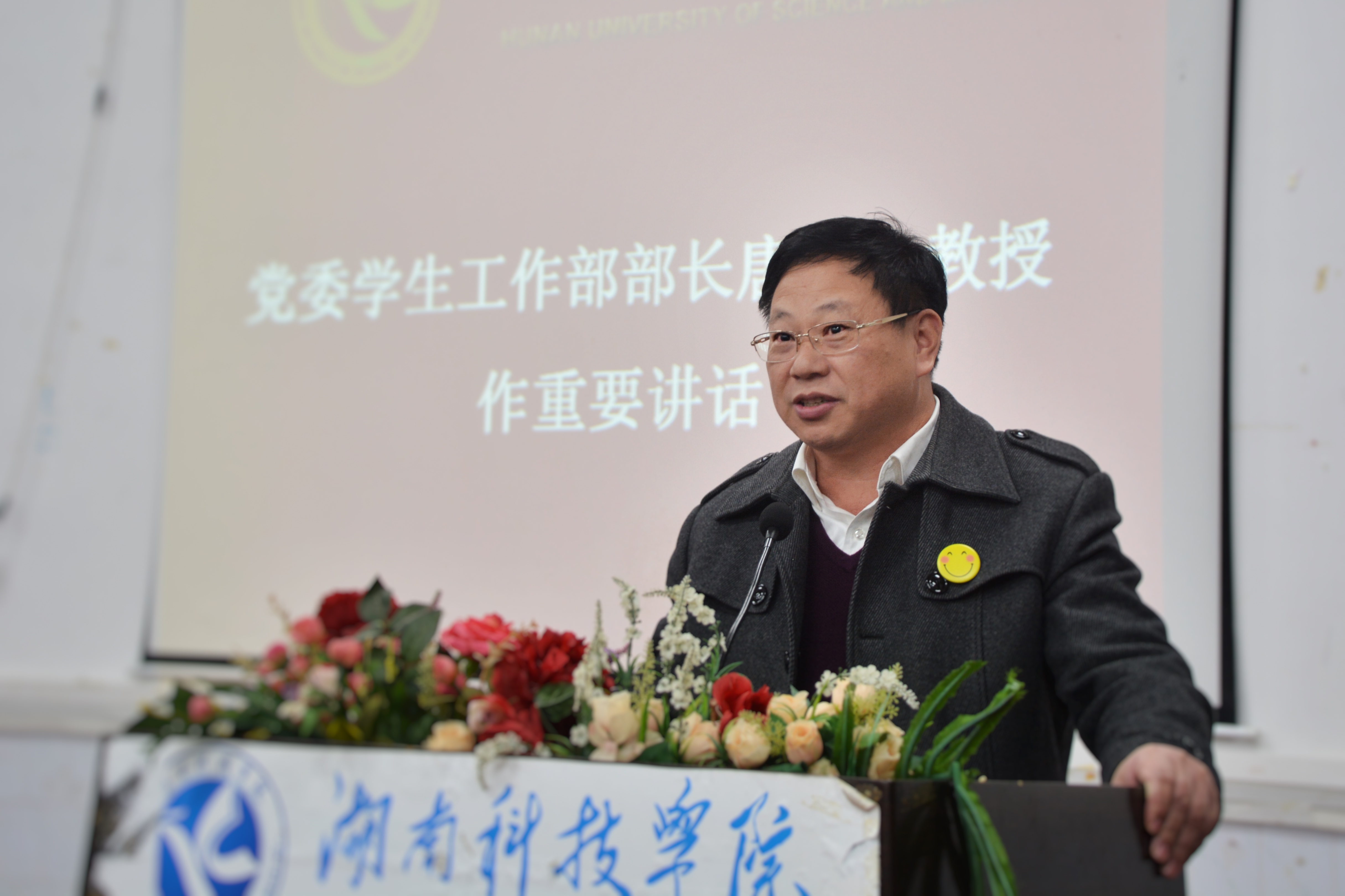 接下来,外国语学院党总支书记雷树彬作讲话,他在讲话中强调,同学们在与人交往的过程中要做到“有礼、有节、有度”。他提议心理教育工作者充分发挥网络媒体作用,通过朋友圈捕捉信息,为工作提供帮助。