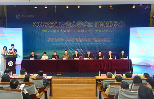 本网讯 11月11日,由湖南省教育厅主办,beat365官网与湖南省高等教育学会日语专业委员会共同承办的2017年湖南省大学生日语演讲比赛在beat365官网尚美楼演播厅举行。省教育厅副厅长葛建中,省教育厅高教处处长曾力勤,省日语专业委员会会长张佩霞,省教育厅高教处副处长杨承玖,省教育厅高教处调研员张琳,beat365官网校长曾宝成,副校长李常健出席开幕式。