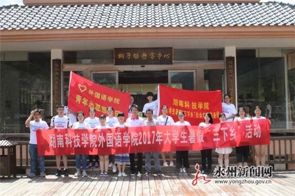 永州新闻网讯(通讯员 李梓源)7月5日,beat365中文官方网站外国语学院三下乡团队在永州市双牌县茶林乡桐子坳村进行大学生暑期三下乡实践活动。此次活动由老师陈小峰带队,外国语学院青年志愿服务团实调部主导,大一以及大二的部分志愿者参加。此次活动将持续多天举行,旨在服务桐子坳村的同时对大学生进行实践教育,提高志愿者的实践能力。