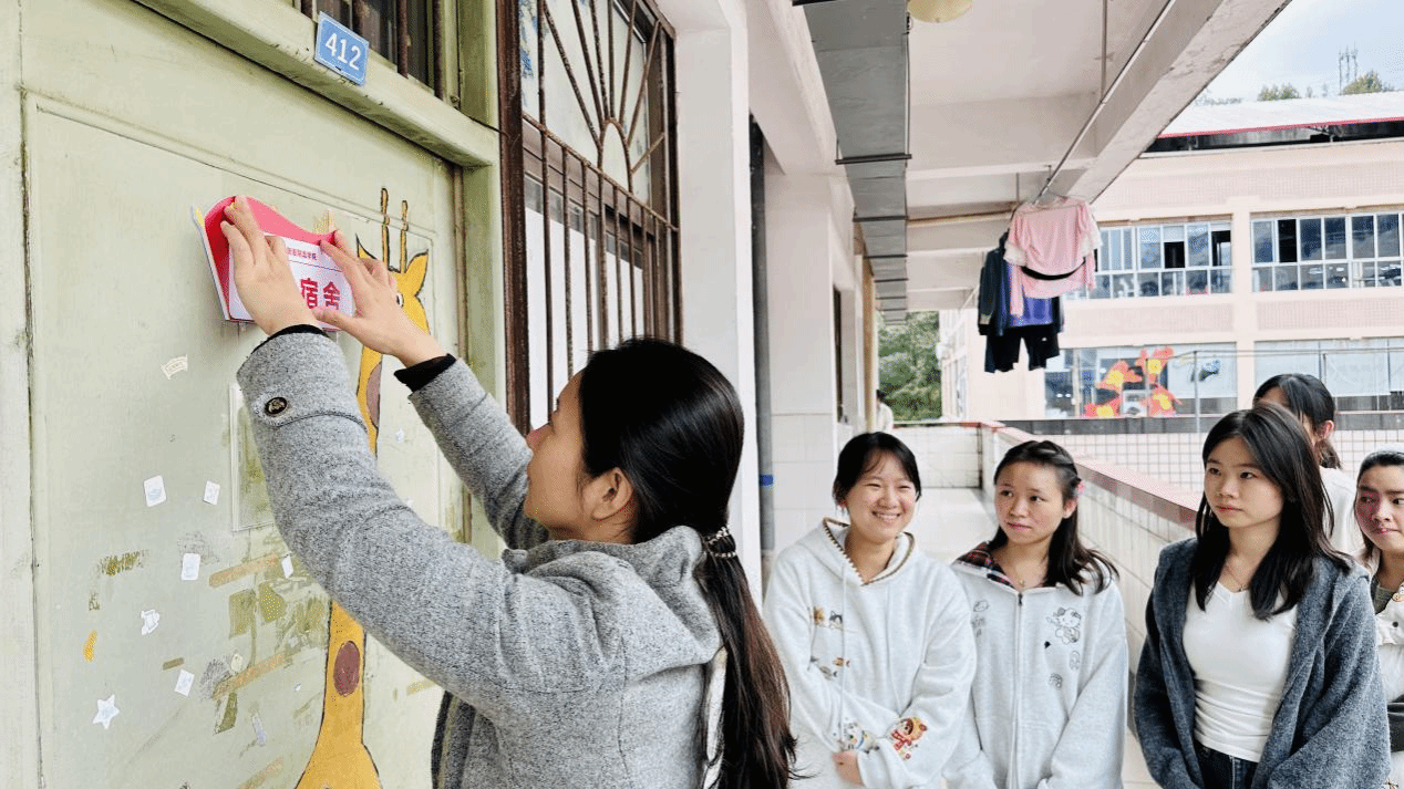 杨攀、龙诗颐分别为学生党员所在宿舍挂牌,让党员身份在宿舍阵地亮出来,强化宿舍阵地的党建引领。杨攀希望全体学生党员以此次活动为契机,亮身份强责任,在日常生活中践行党员标准,发挥示范引领标杆作用,带动宿舍形成优良学风与文明氛围,凝聚正向合力。