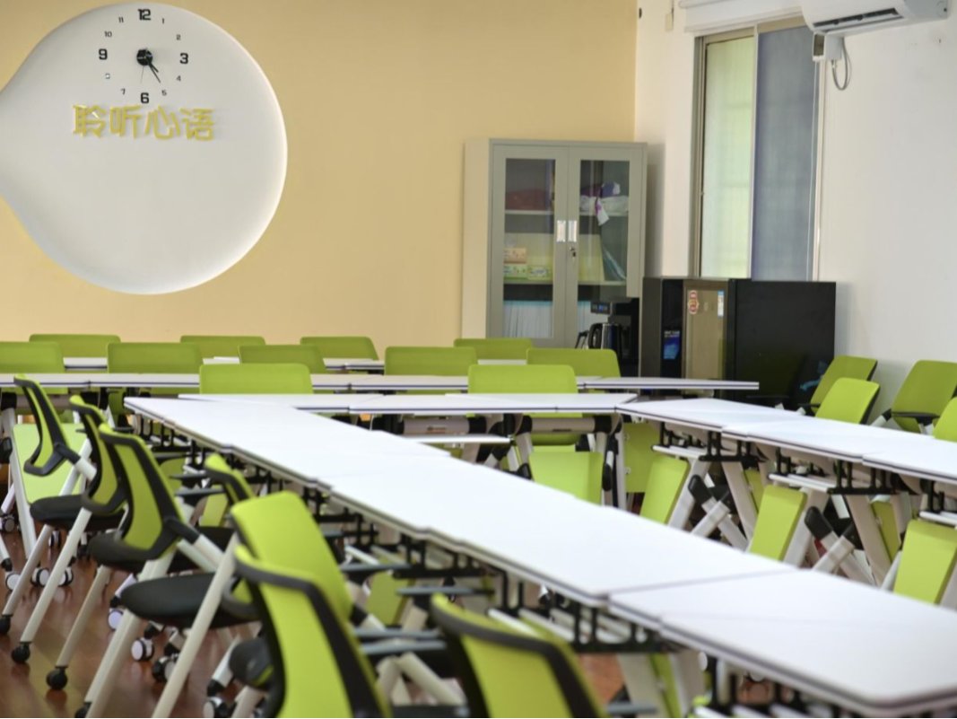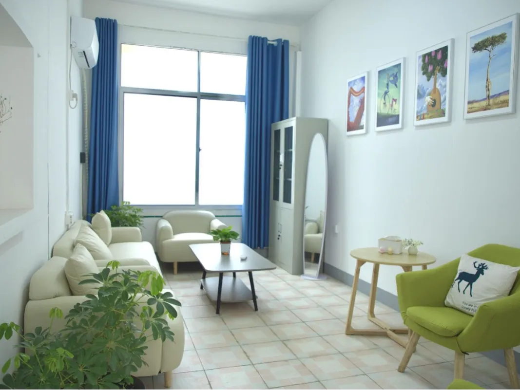 接待室内有休息椅,茶水和心理期刊。是日常接待来访学生、预约登记、填写相关材料、接听热线电话的心理第一站。