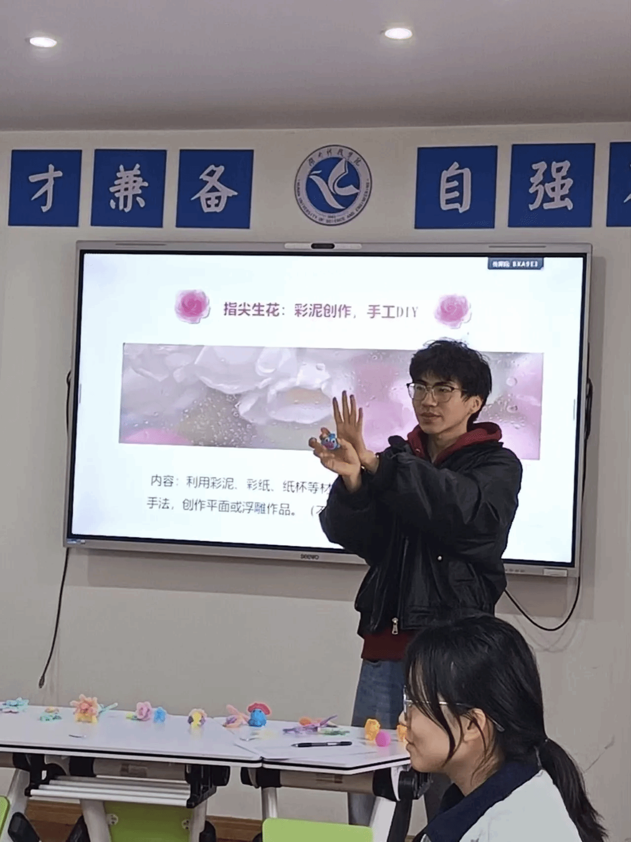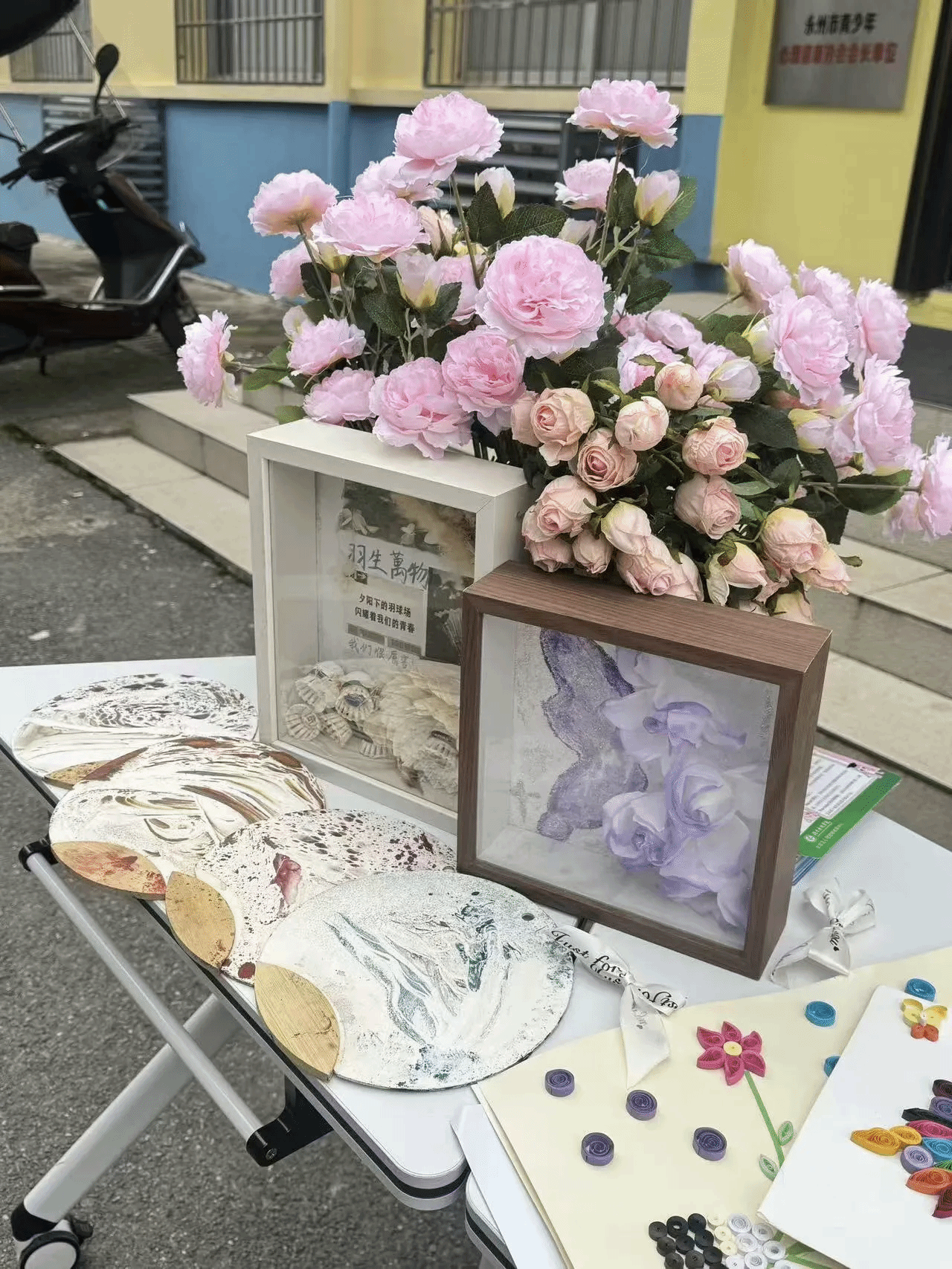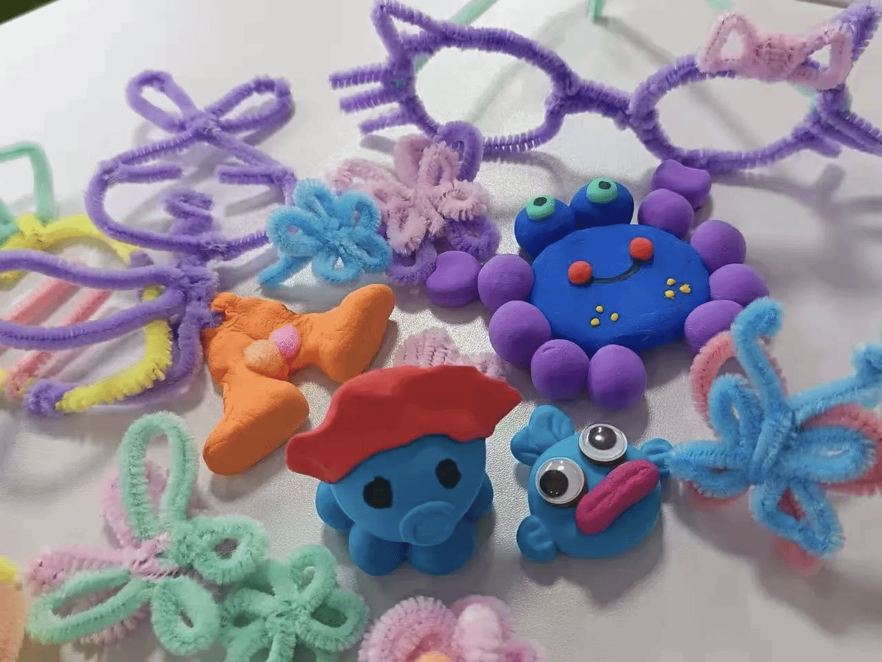 同学们以彩纸、一次性纸杯、彩泥为主要材料,通过剪、画、捏、揉、贴等多种手法自由创作,围绕风景、动物、节日等主题制作纸花、粘贴画等作品,件件作品创意十足、饱含心意,完成后大家互相赠送、拍照留念,在动手实践中传递美好情谊。