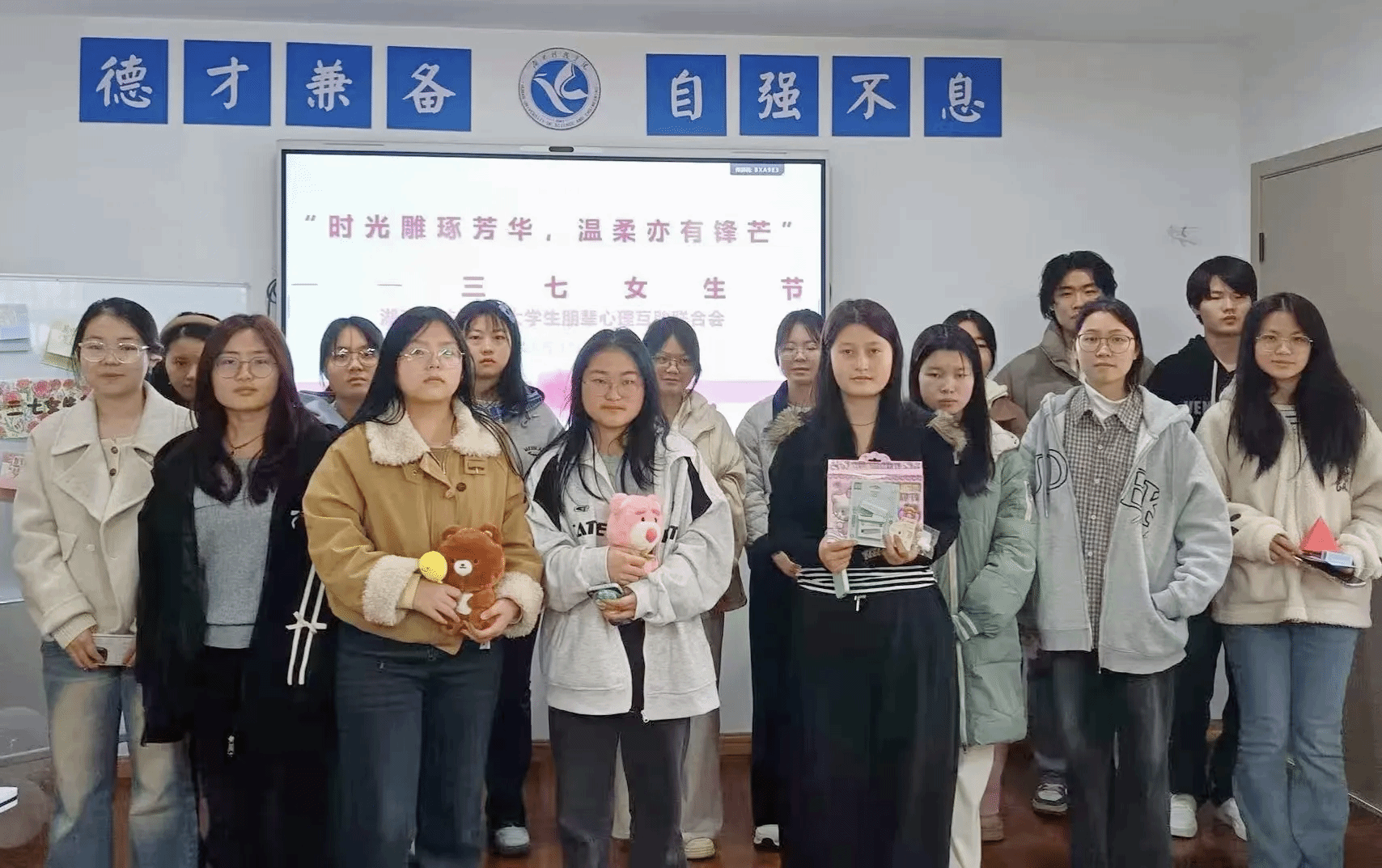 (编辑:颜钰轩 马美迪)三月春风送暖,芳华如约绽放。为致敬女性坚韧与美好,倡导性别尊重与平等理念,丰富学生精神文化生活,展现新时代女性自信、独立、优雅的风采,beat365官网大学生朋辈心理互助联合会于3月7日在大学生心理健康教育中心开展以“时光雕琢芳华,温柔亦有锋芒”为主题的三七女生节活动,全校学生积极参与,活动圆满落幕。