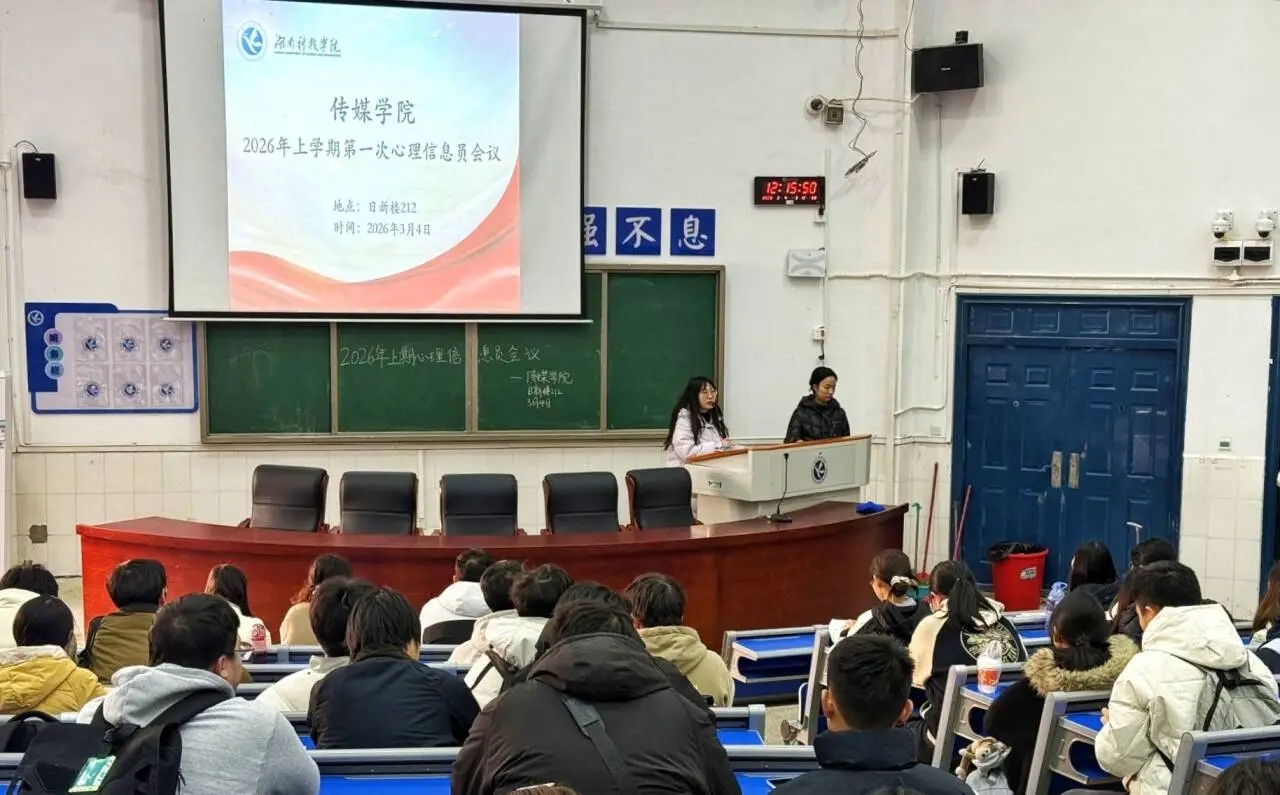 传媒学院于3月4日中午12:15-12:50在日新楼212教室开展会议,由屈豆豆老师主讲,全体心理信息员参训。