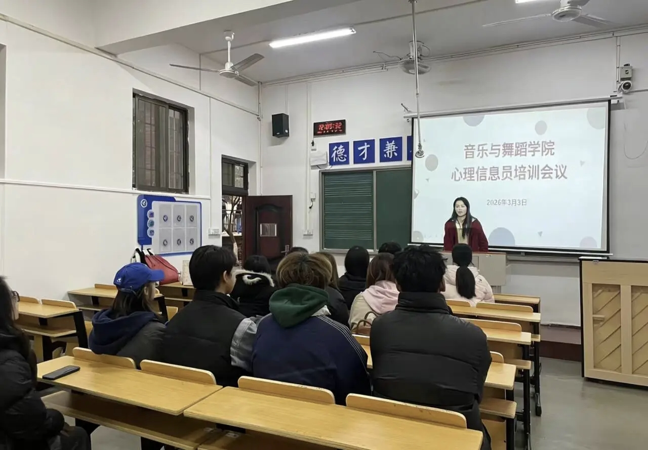 音乐与舞蹈学院于3月3日中午12点在毓秀楼103教室开展会议,由龙慧老师主讲,全体心理信息员参训。