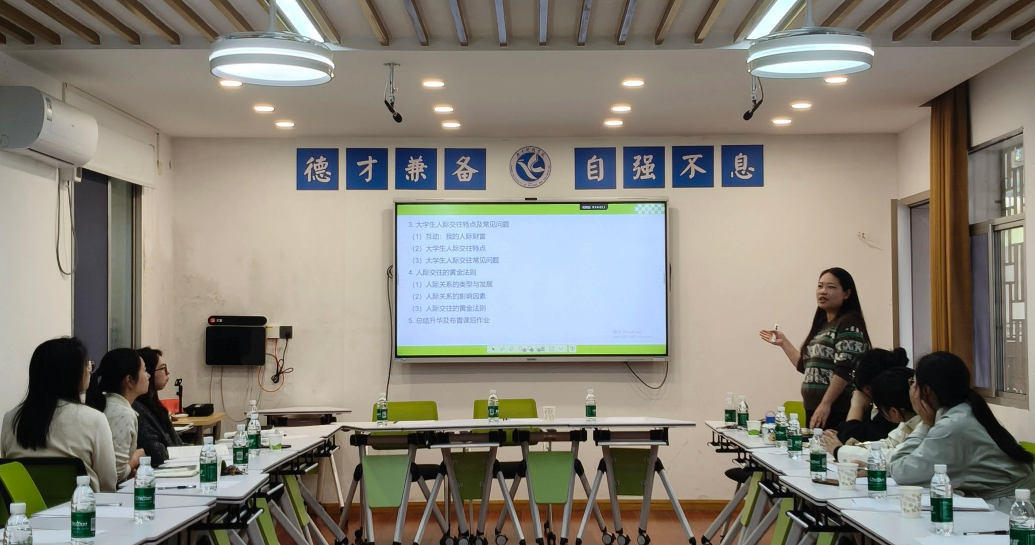 本期教研由两组教师牵头主讲,第一组围绕人格与人格完善章节,深入讲解大学生健全人格塑造、个性优势发展等教学重难点与课堂实践设计;第二组立足人际关系与有效沟通章节,分享校园人际相处技巧、沟通方法训练与冲突化解的教学路径。整场研讨以课件演示、集中交流、资源整合的方式开展,进一步优化教学设计、沉淀教学成果,为课程质量提升提供有力支撑。