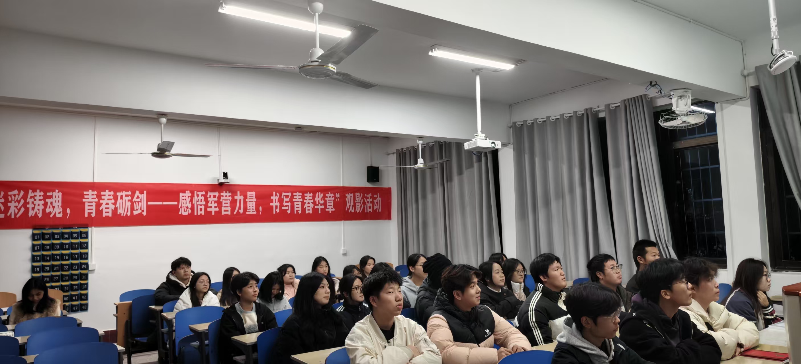 为传承红色基因,筑牢青年学子爱国强军思想根基,2025年11月21日,学校迷彩军营社在明德楼304开展“迷彩铸魂,青春砺剑—感悟军营力量,书写青春华章”红色影片观影活动,集中观看抗美援朝题材影片《长津湖之水门桥》。社团全体成员及各学院军事爱好者参与活动,在光影流转中重温革命岁月,汲取精神力量。