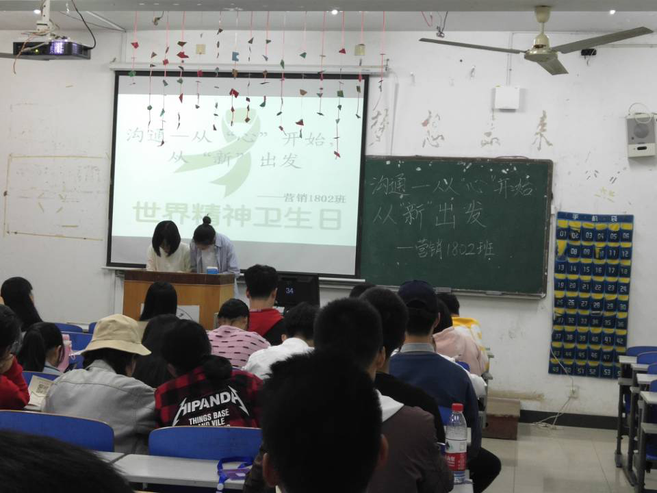 本网讯(通讯员 宋秋云、吴小燕)在第二十五个“世界精神卫生日”来临之际,经济与管理学院于10月10日晚上19:10组织2018级新生开展了“从心开始,从新出发”世界精神卫生日主题班会活动。希望通过本次活动让大家进一步了解精神卫生相关知识,促进同学们身心健康;同时让同学们学会正确处理人际关系,学会如何与人沟通。