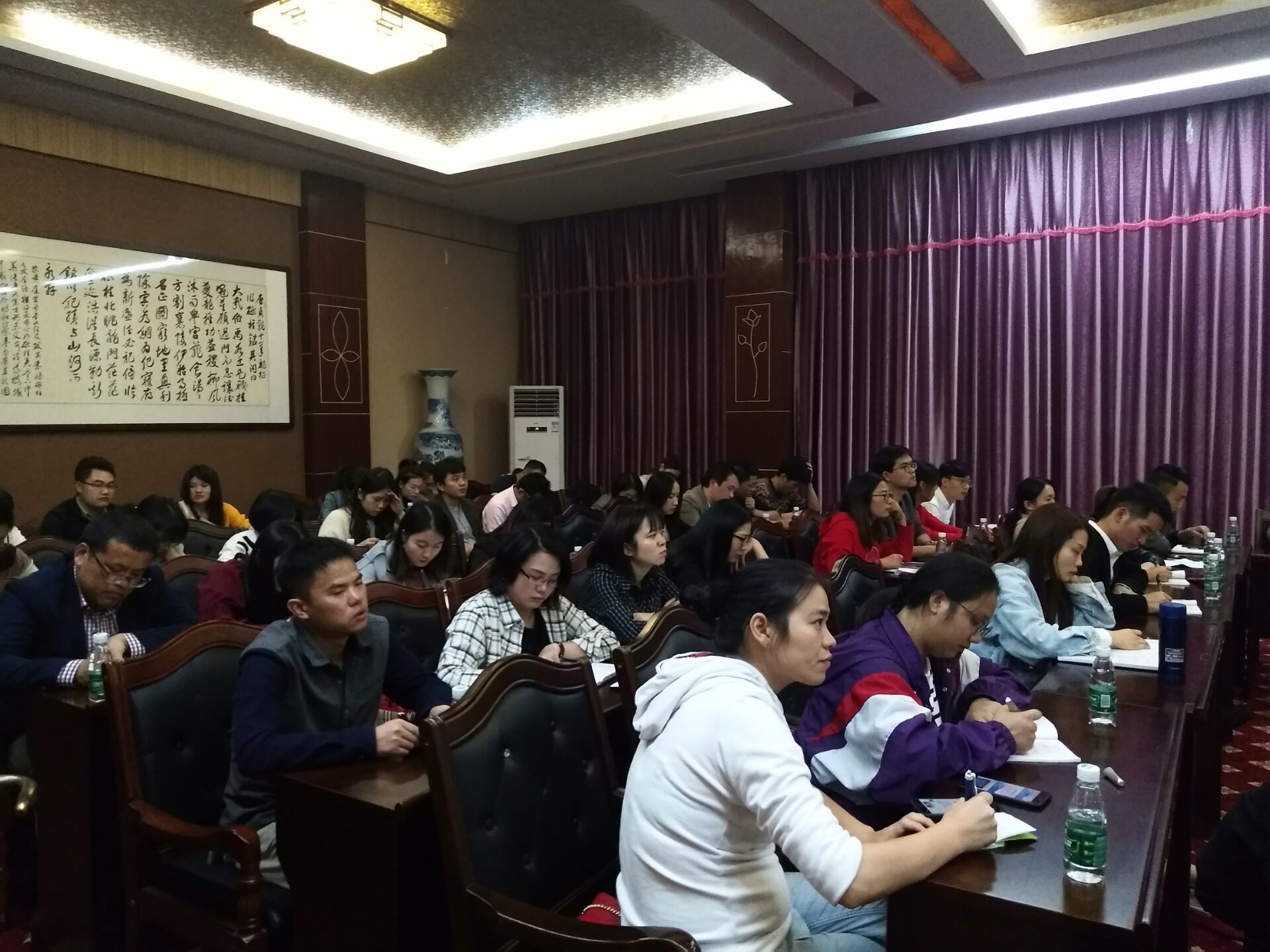 本网讯 11月5日晚7点,beat365中文官方网站2018年第一期辅导员学术沙龙活动在行政楼八楼三会议室举行。各院党总支副书记、全体辅导员和学工部相关人员参加了本次活动。活动由学工部副部长胡敏辉主持,学工部长唐华山、经济与管理学院学工办主任王君作主要发言。