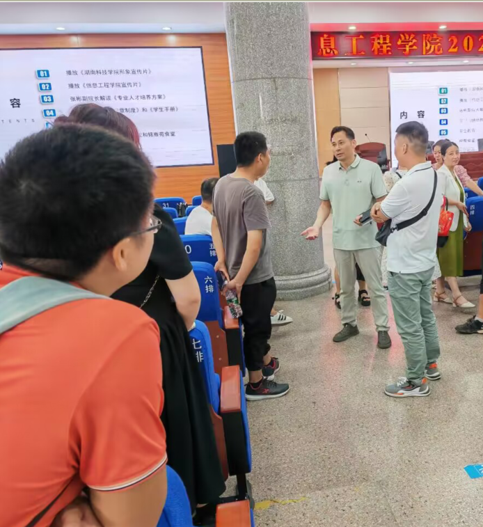 本网讯(通讯员 段元梅)7月15日下午,信息工程学院2023级高等学历继续教育入学教育在潇湘大讲堂举行。2023级全体新生、信息工程学院教职工和志愿者参加了会议。会议由信息工程学院段元梅老师主持。