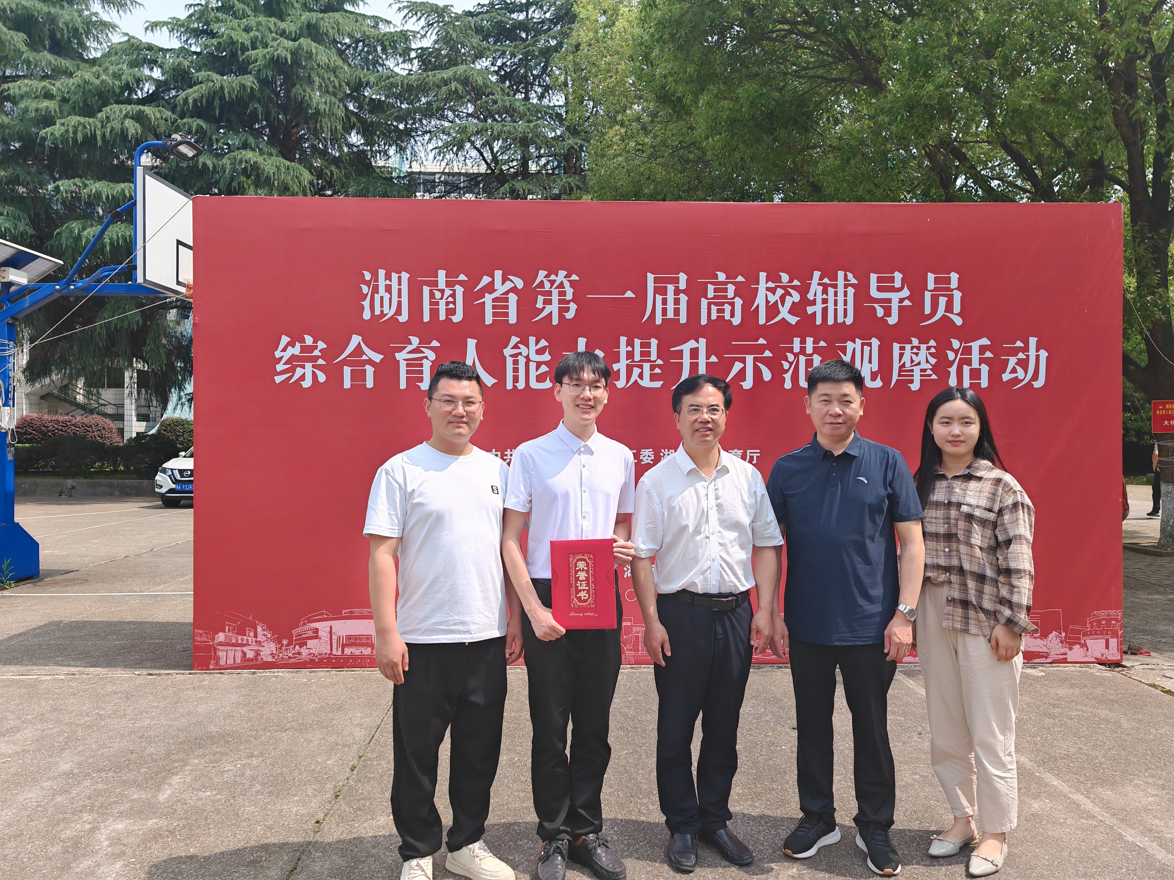 本网讯(通讯员 李佳浩 刘兵兵)5月22日至25日,湖南省第一届高校辅导员综合育人能力提升示范观摩活动在湖南农业大学举行,来自全省本、专科院校的102名辅导员参加了比赛。经过激烈比拼,我院辅导员郭洱鹏老师荣获三等奖。