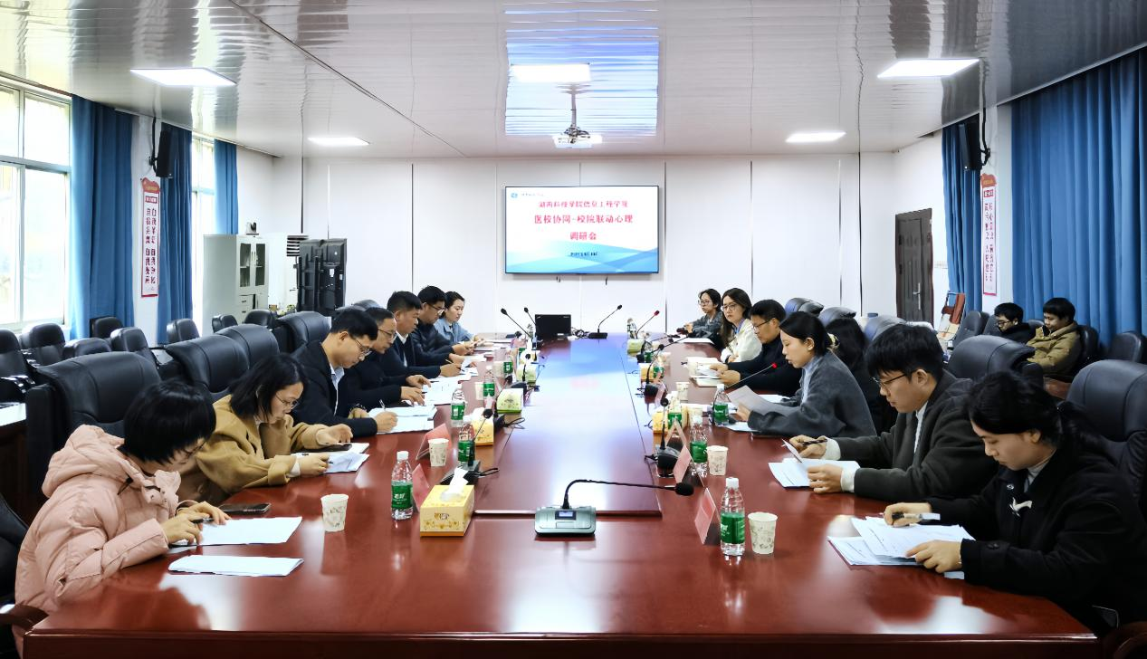 在调研座谈会上,学院汇报了心理工作开展的情况与存在的主要障碍,并与永州市脑科医院专家组就学生心理健康筛查体系优化、心理危机转介流程规范、理工科学生学业压力干预策略等核心议题展开研讨,针对心理疾病诊疗资源对接、隐性危机识别等难点提出系统性解决方案。邹湘林院长结合临床经验,对情绪管理、人际交往障碍、心理疾病转介与治疗等学生常见问题提供定制化指导建议。专家组结合学院学生群体特性,重点分析高学业负荷环境下的心理干预模式,并就家校沟通壁垒、医疗资源下沉路径等提出建设性意见。