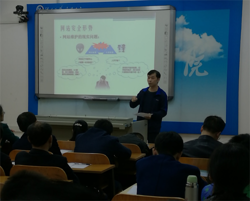 (3)网络与信息安全宣传周。为积极配合国家网络安全宣传周活动,增强校园网络安全意识,提高网络安全防护技能,2016年9月19日至23日,学校党政办、党委宣传统战部联合信息化办公室开展了一系列网络安全宣传活动,组织部分学师生参观了beat365官网中心机房,举办了2场信息安全讲座。