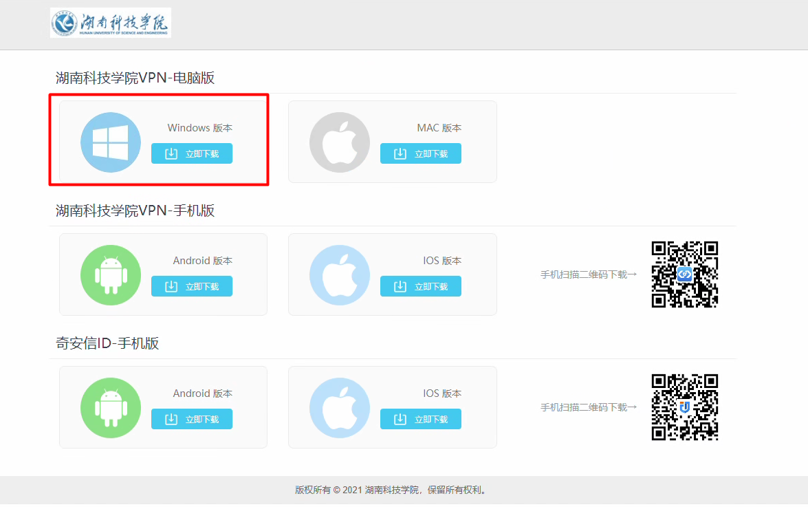 3、进入VPN下载页面,如下图所示。根据用户当前系统下载相应的安装包。