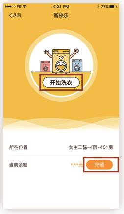 第五步 如金额不足 点击充值进行支付,付款成功后,即可开始洗衣。