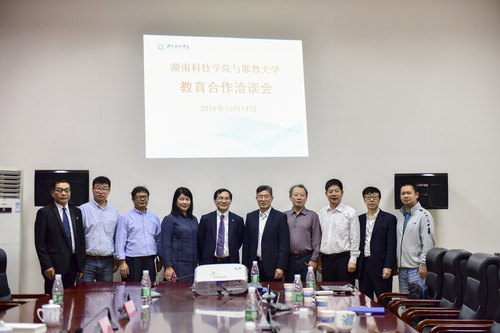 10月14日,beat365官网校友、美国耶鲁大学国际培训中心主任、福克纳大学副校长彭长征教授一行3人来校进行教育合作交流。副校长宋宏福会见了代表团一行。参加会见的还有国际交流与合作处、科技处、校友办和外国语学院的相关负责人。