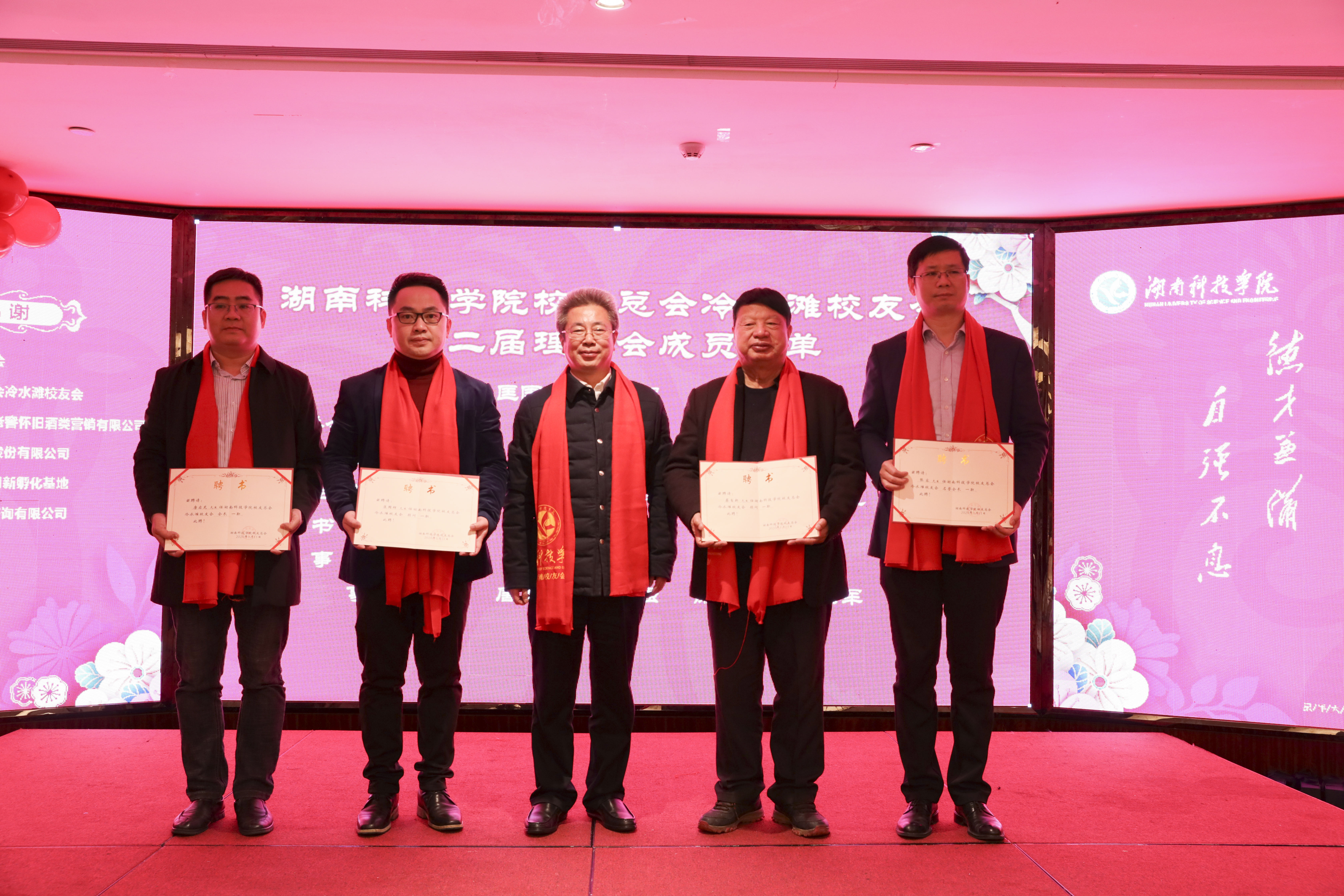 大会表决通过了冷水滩校友会新一届理事会候选人建议名单。曾宝成为冷水滩校友会第二届理事会顾问、名誉会长、会长颁发聘书。唐艳明为冷水滩校友会第二届理事会副会长、秘书长、理事颁发聘书。