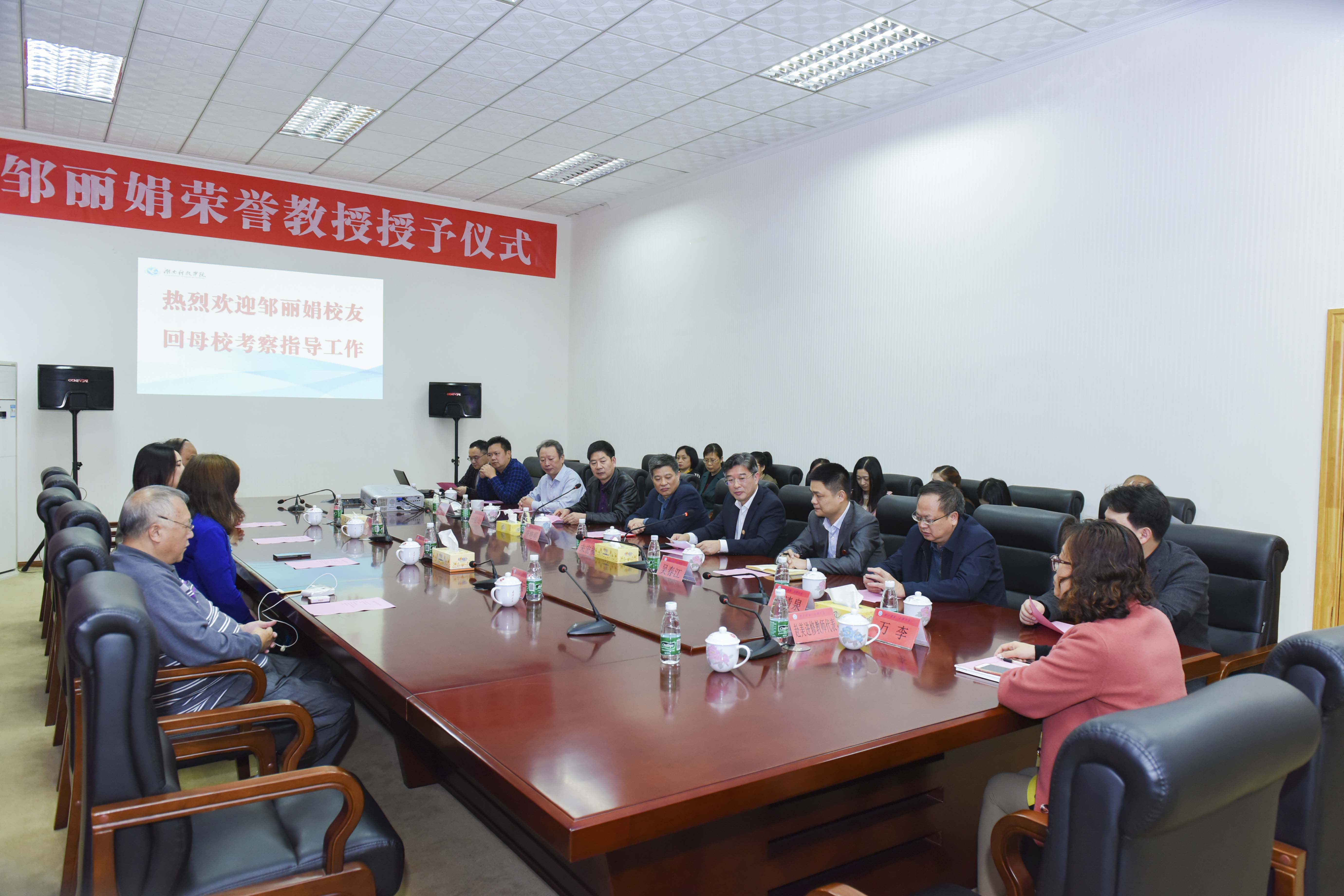 唐艳明为邹丽娟校友颁发了荣誉教授证书。